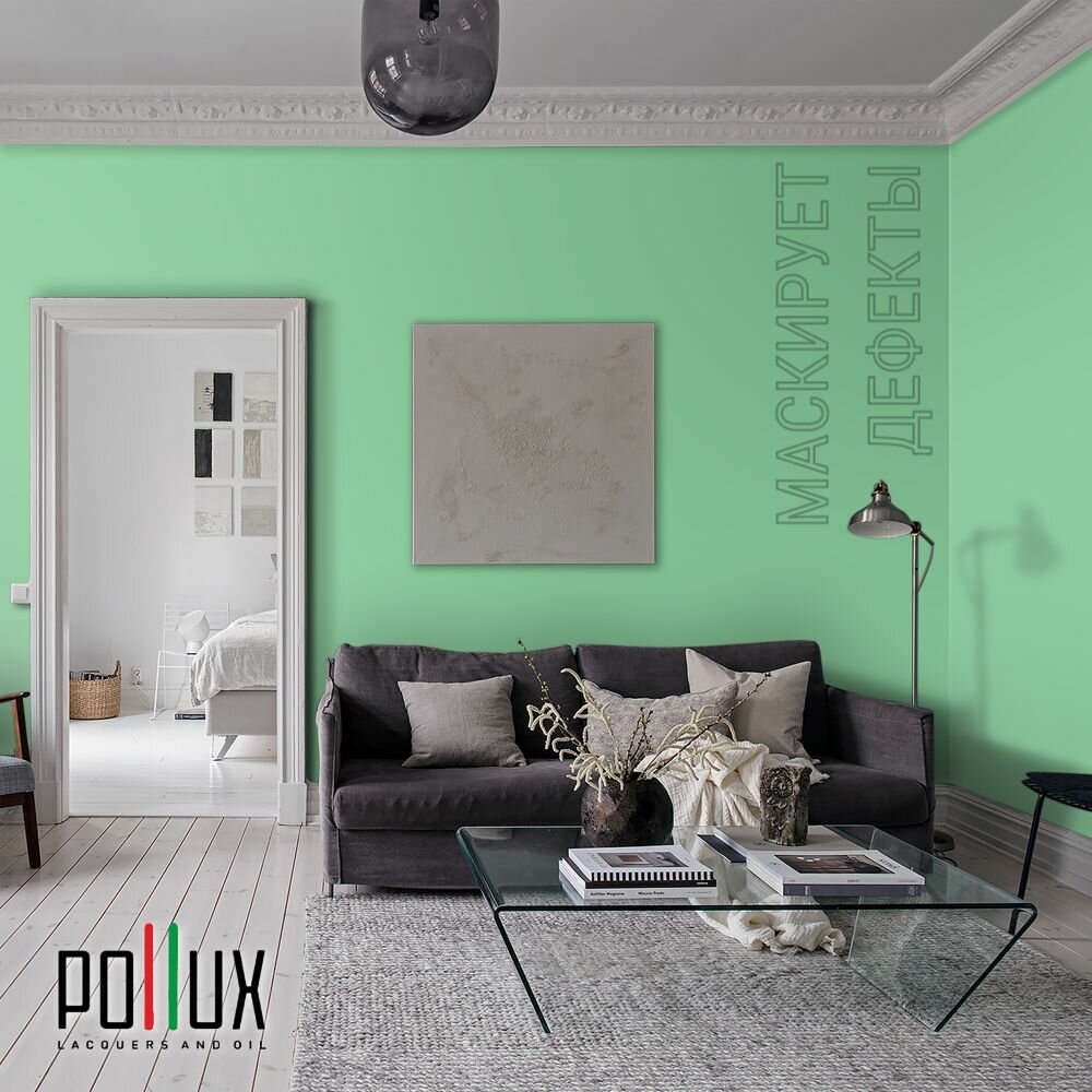 Краска моющаяся интерьерная для стен и потолков, Pollux INTERIOR без запаха, быстросохнущая, акриловая, матовое покрытие, цвет NCS S 6530-G10Y, 1л.