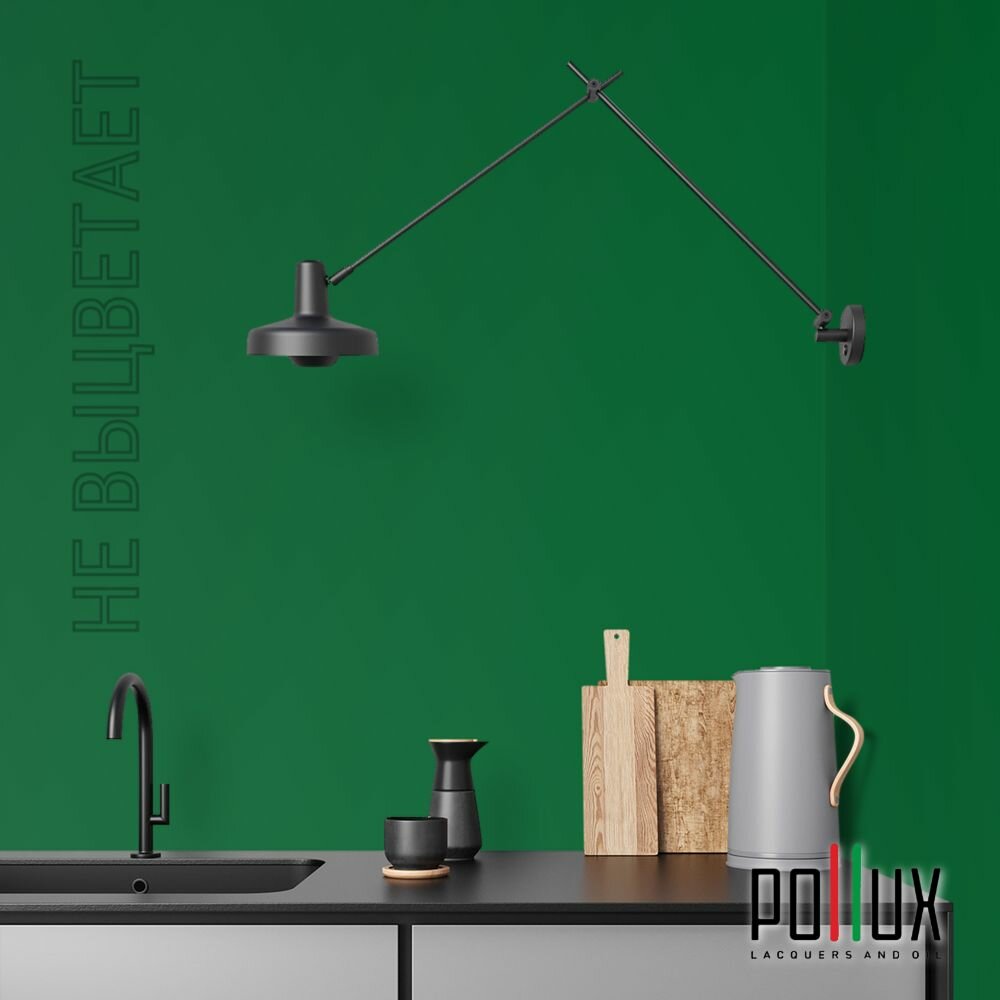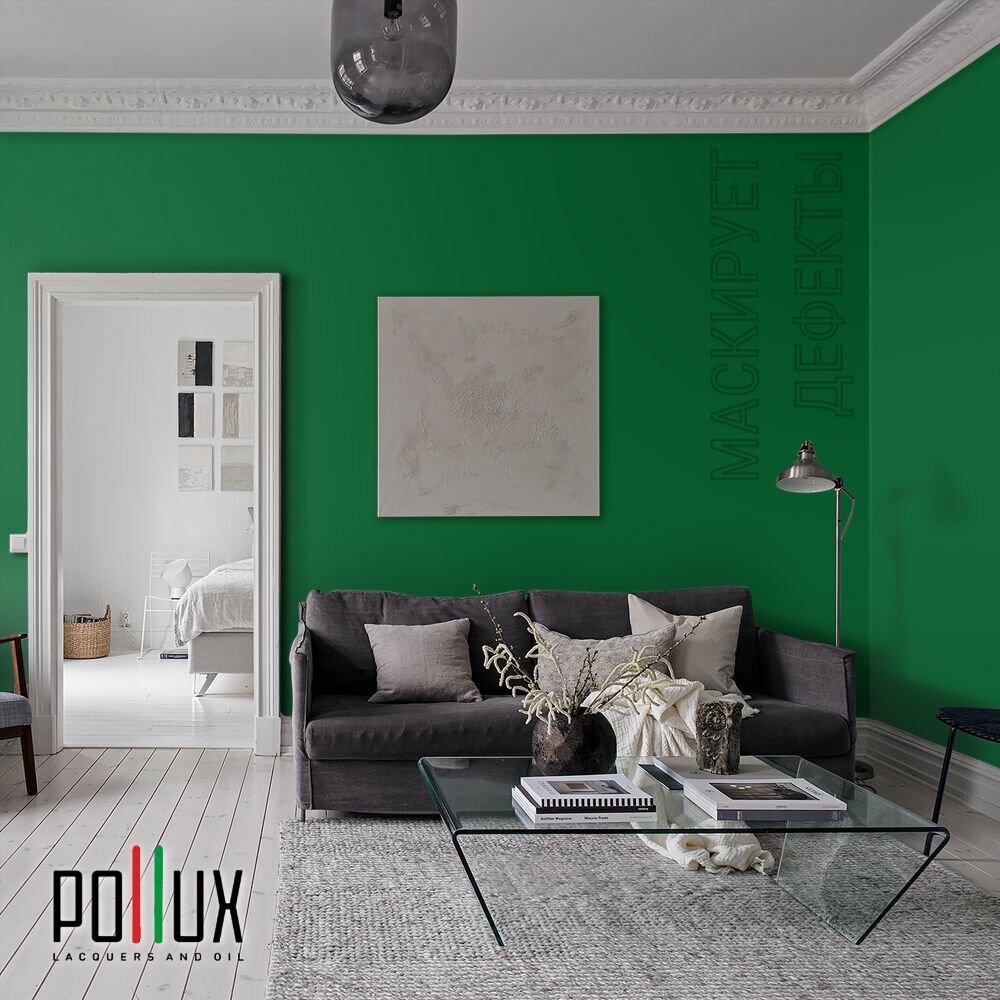 Краска моющаяся интерьерная для стен и потолков, Pollux INTERIOR без запаха, быстросохнущая, акриловая, матовое покрытие, цвет NCS S 6030-G10Y, 1л.
