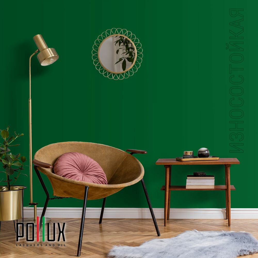 Краска моющаяся интерьерная для стен и потолков, Pollux INTERIOR без запаха, быстросохнущая, акриловая, матовое покрытие, цвет NCS S 6030-B, 1л.