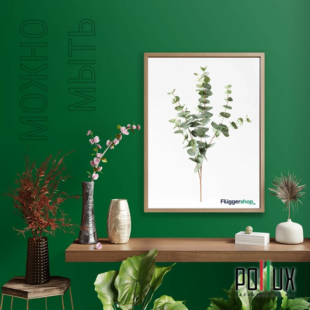 Краска моющаяся интерьерная для стен и потолков, Pollux INTERIOR без запаха, быстросохнущая, акриловая, матовое покрытие, цвет NCS S 5540-G10Y, 1л.