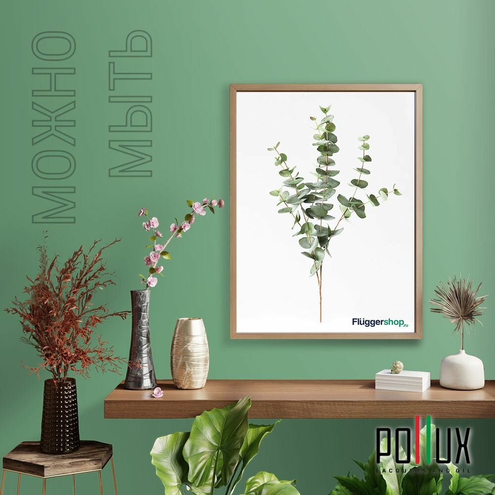 Краска моющаяся интерьерная для стен и потолков, Pollux INTERIOR без запаха, быстросохнущая, акриловая, матовое покрытие, цвет NCS S 6030-G10Y, 1л.