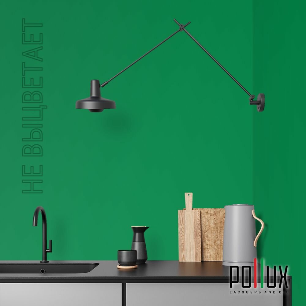 Краска моющаяся интерьерная для стен и потолков, Pollux INTERIOR без запаха, быстросохнущая, акриловая, матовое покрытие, цвет NCS S 3560-G10Y, 1л.