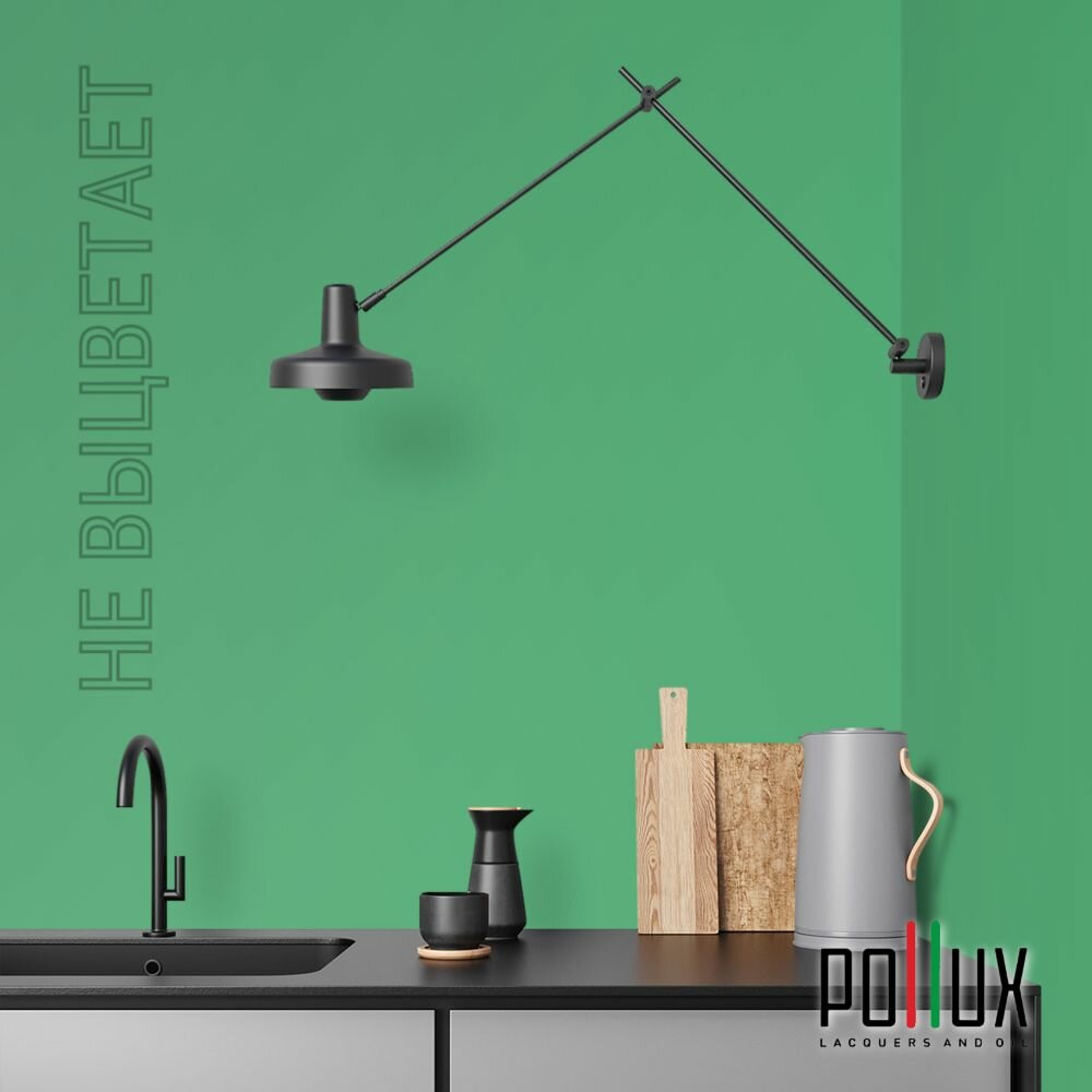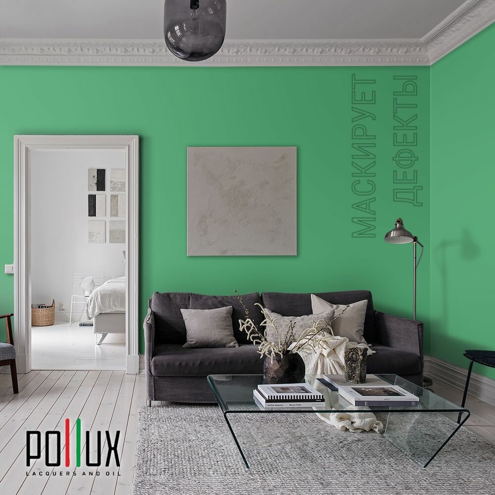Краска моющаяся интерьерная для стен и потолков, Pollux INTERIOR без запаха, быстросохнущая, акриловая, матовое покрытие, цвет NCS S 6530-G10Y, 1л.