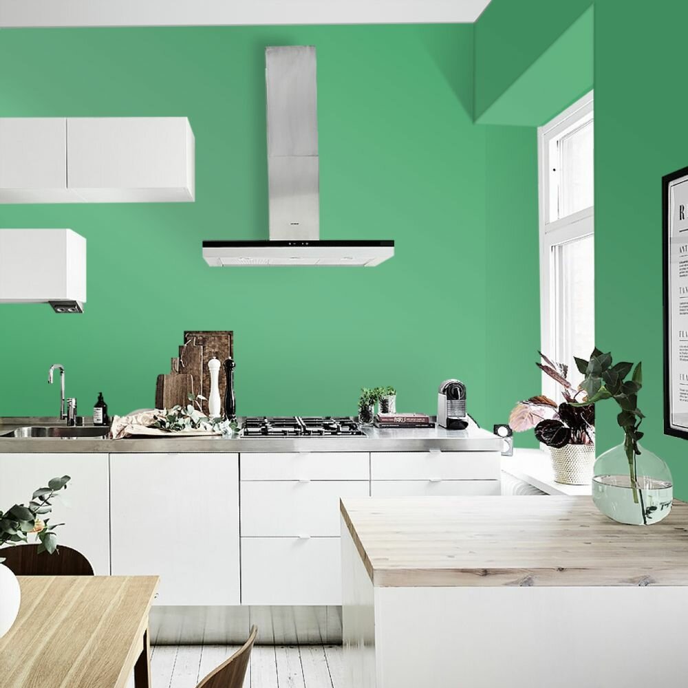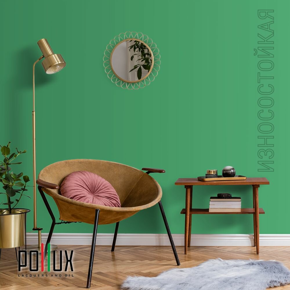 Краска моющаяся интерьерная для стен и потолков, Pollux INTERIOR без запаха, быстросохнущая, акриловая, матовое покрытие, цвет NCS S 6030-G10Y, 1л.