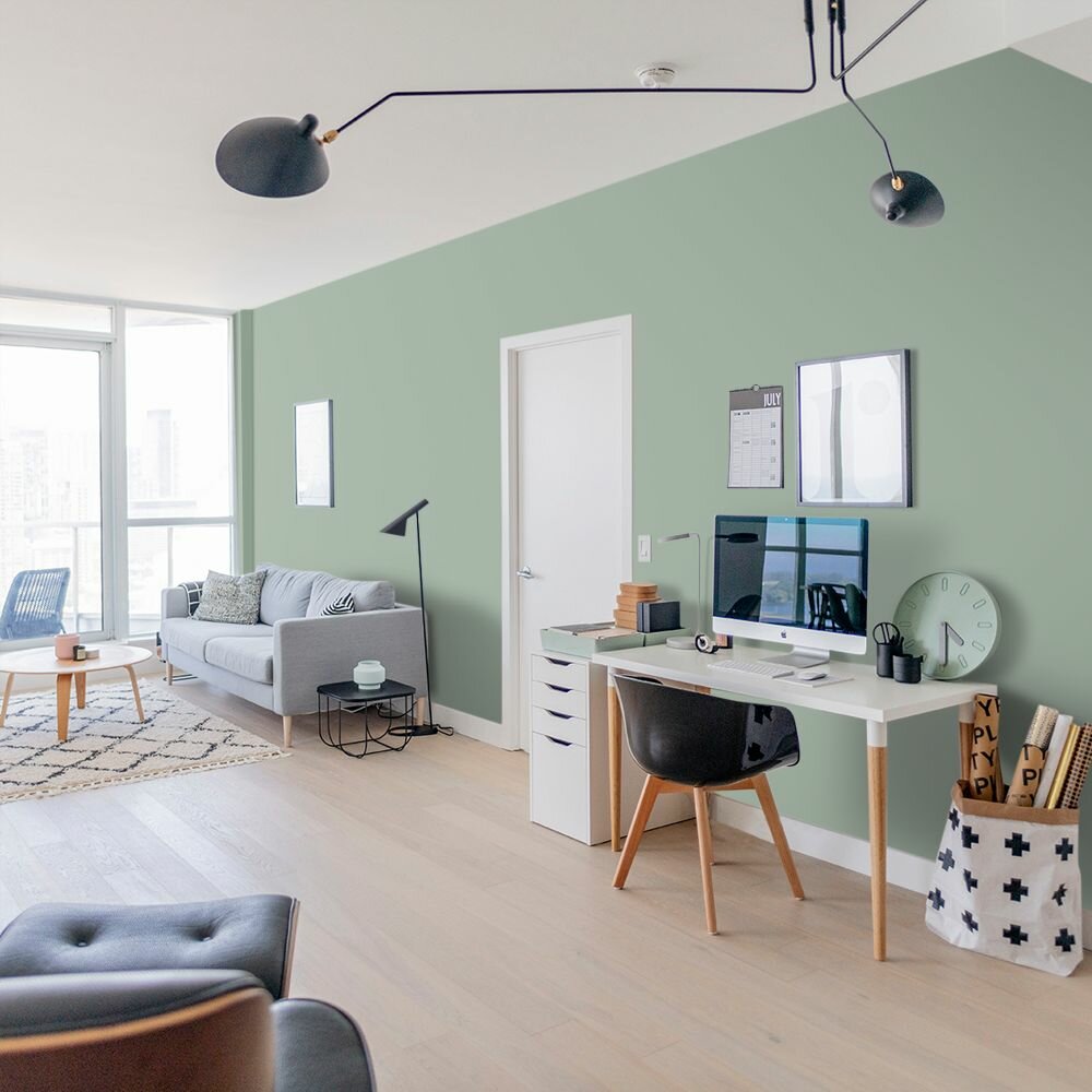 Краска моющаяся интерьерная для стен и потолков, Pollux INTERIOR без запаха, быстросохнущая, акриловая, матовое покрытие, цвет NCS S 6030-G10Y, 1л.