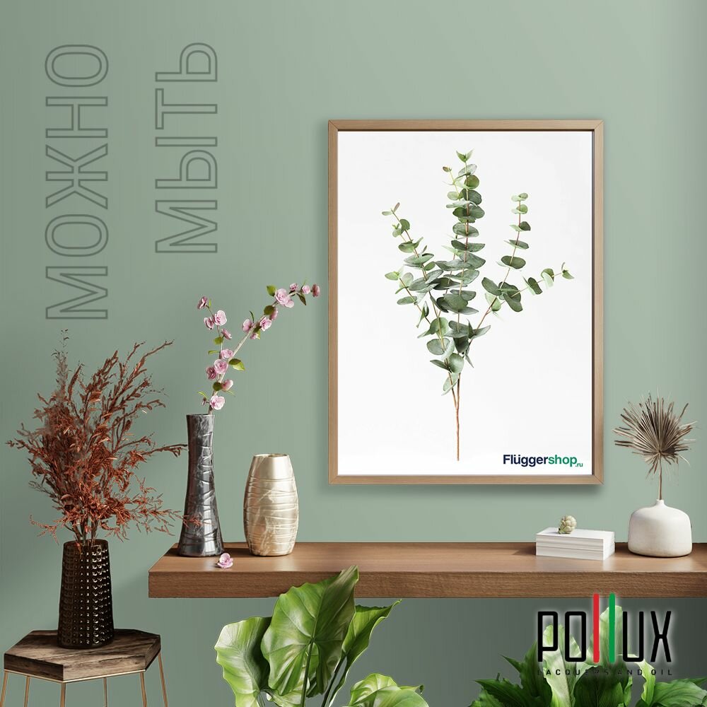 Краска моющаяся интерьерная для стен и потолков, Pollux INTERIOR без запаха, быстросохнущая, акриловая, матовое покрытие, цвет NCS S 8010-G10Y, 1л.