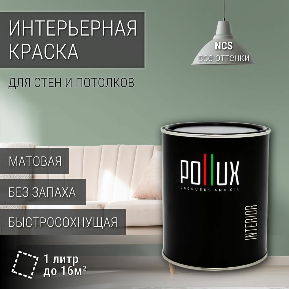Краска моющаяся интерьерная для стен и потолков, Pollux INTERIOR без запаха, быстросохнущая, акриловая, матовое покрытие, цвет NCS S 4010-G10Y, 1л.