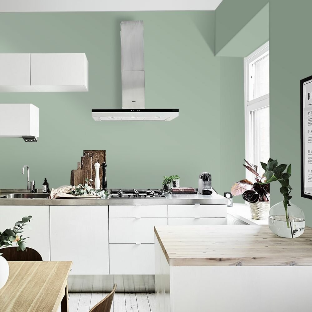 Краска моющаяся интерьерная для стен и потолков, Pollux INTERIOR без запаха, быстросохнущая, акриловая, матовое покрытие, цвет NCS S 5540-G10Y, 1л.