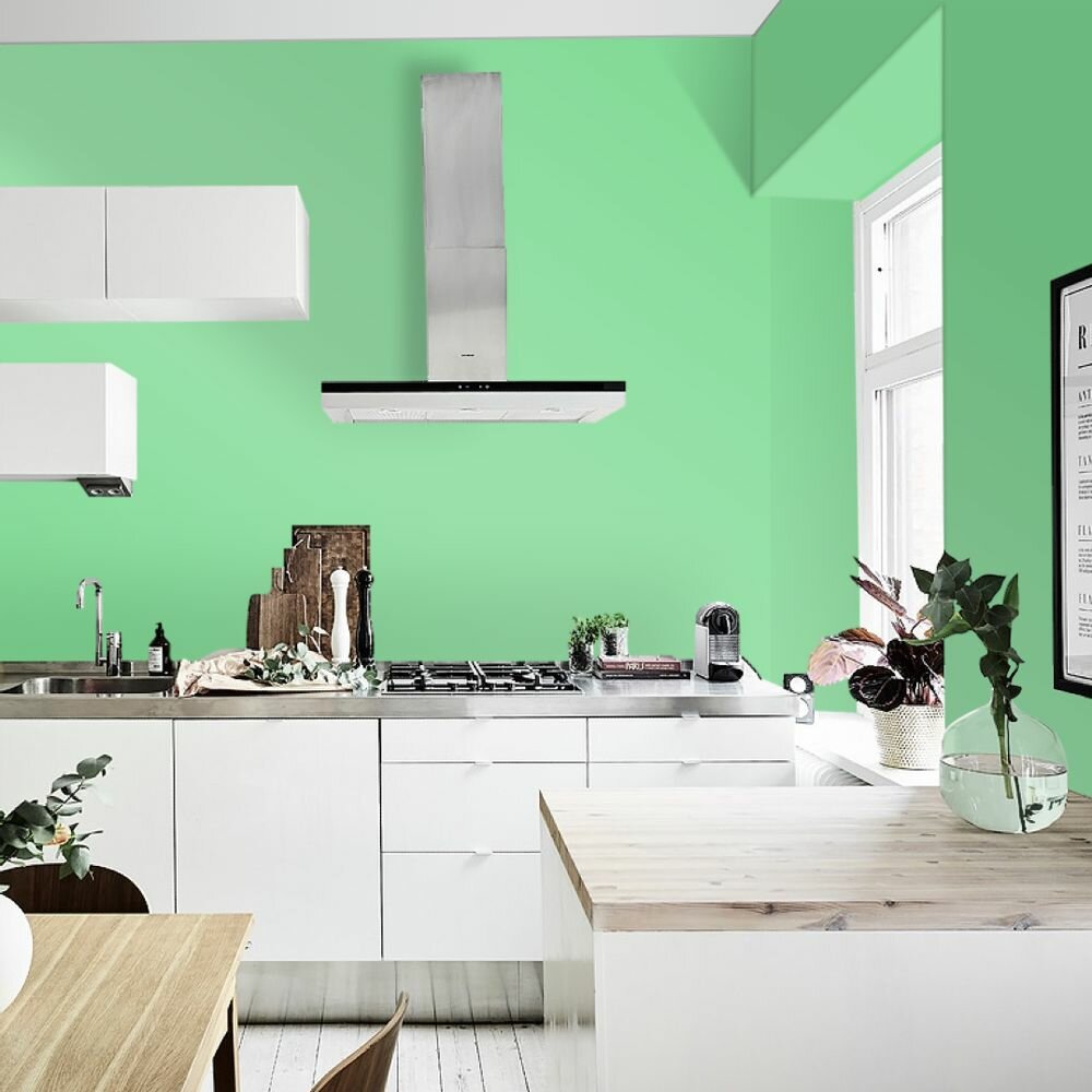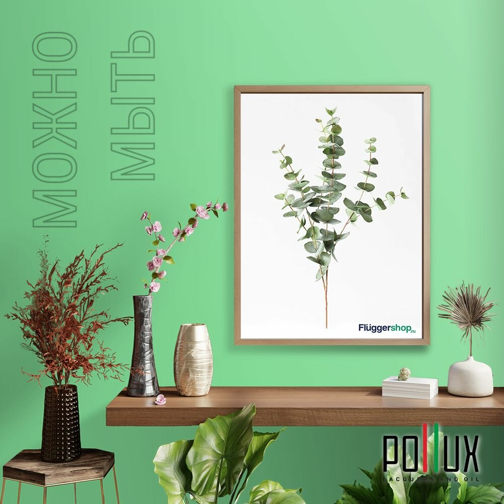 Краска моющаяся интерьерная для стен и потолков, Pollux INTERIOR без запаха, быстросохнущая, акриловая, матовое покрытие, цвет NCS S 6030-G10Y, 1л.