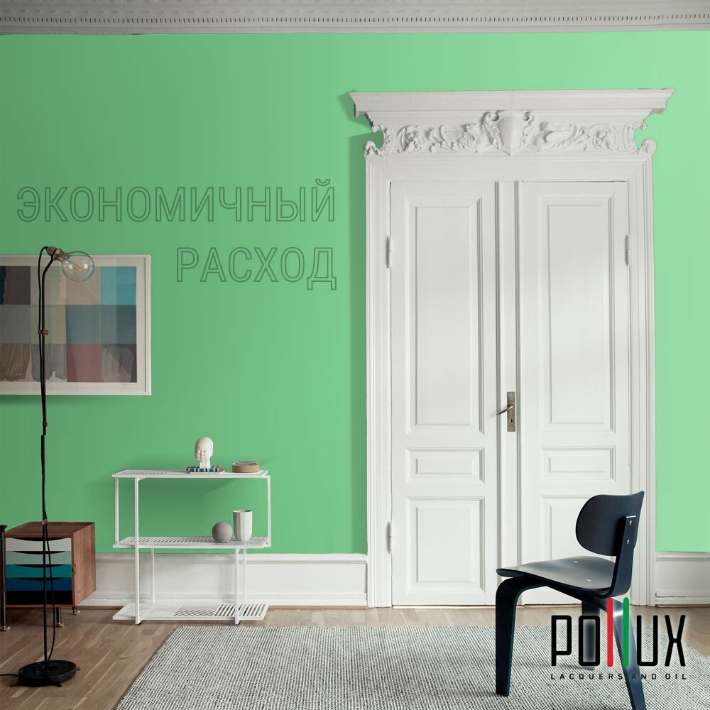 Краска моющаяся интерьерная для стен и потолков, Pollux INTERIOR без запаха, быстросохнущая, акриловая, матовое покрытие, цвет NCS S 6530-G10Y, 1л.