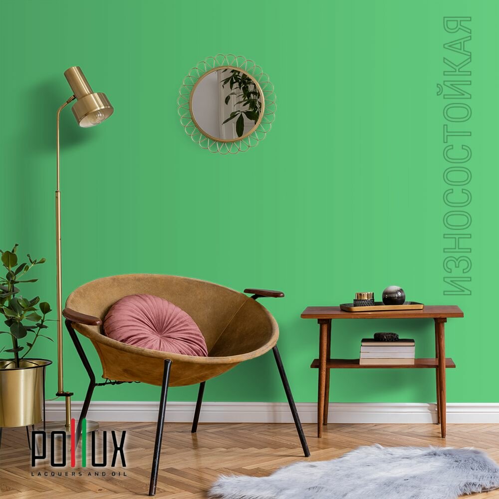 Краска моющаяся интерьерная для стен и потолков, Pollux INTERIOR без запаха, быстросохнущая, акриловая, матовое покрытие, цвет NCS S 6030-G10Y, 1л.