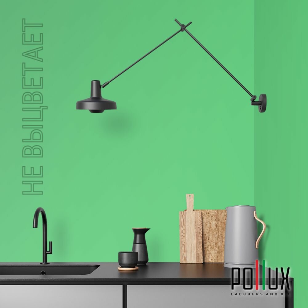 Краска моющаяся интерьерная для стен и потолков, Pollux INTERIOR без запаха, быстросохнущая, акриловая, матовое покрытие, цвет NCS S 6530-G10Y, 1л.
