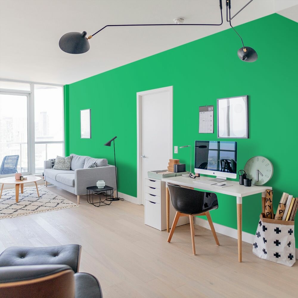 Краска моющаяся интерьерная для стен и потолков, Pollux INTERIOR без запаха, быстросохнущая, акриловая, матовое покрытие, цвет NCS S 4050-G10Y, 1л.