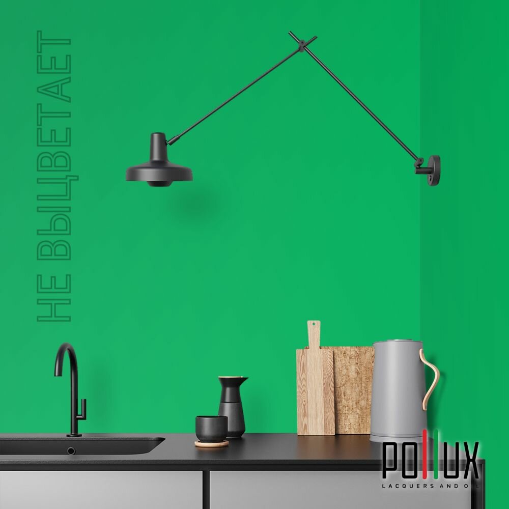 Краска моющаяся интерьерная для стен и потолков, Pollux INTERIOR без запаха, быстросохнущая, акриловая, матовое покрытие, цвет NCS S 3560-G10Y, 1л.