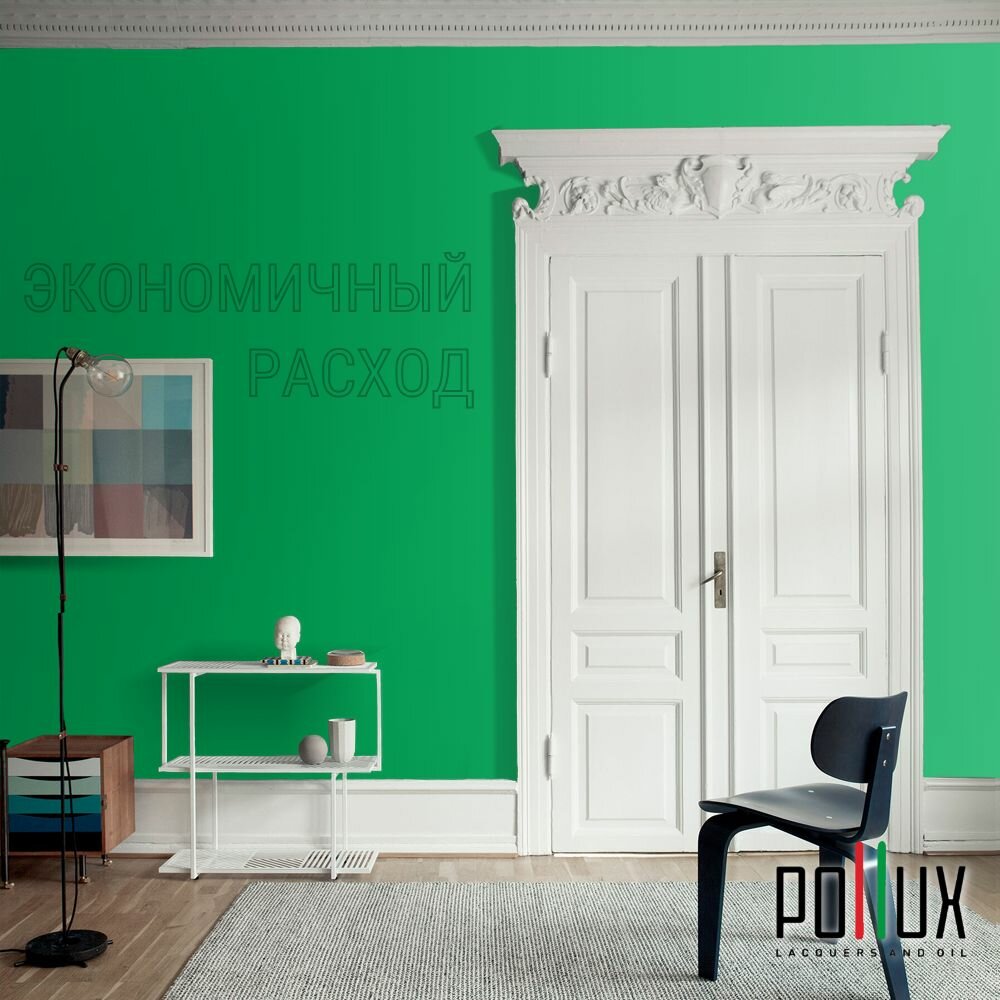 Краска моющаяся интерьерная для стен и потолков, Pollux INTERIOR без запаха, быстросохнущая, акриловая, матовое покрытие, цвет NCS S 6530-G10Y, 1л.