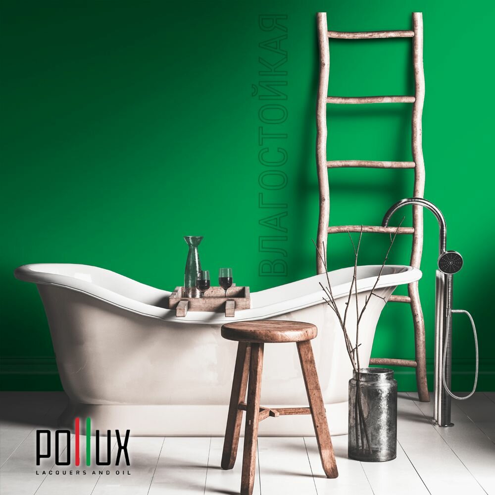 Краска моющаяся интерьерная для стен и потолков, Pollux INTERIOR без запаха, быстросохнущая, акриловая, матовое покрытие, цвет NCS S 2040-G10Y, 1л.