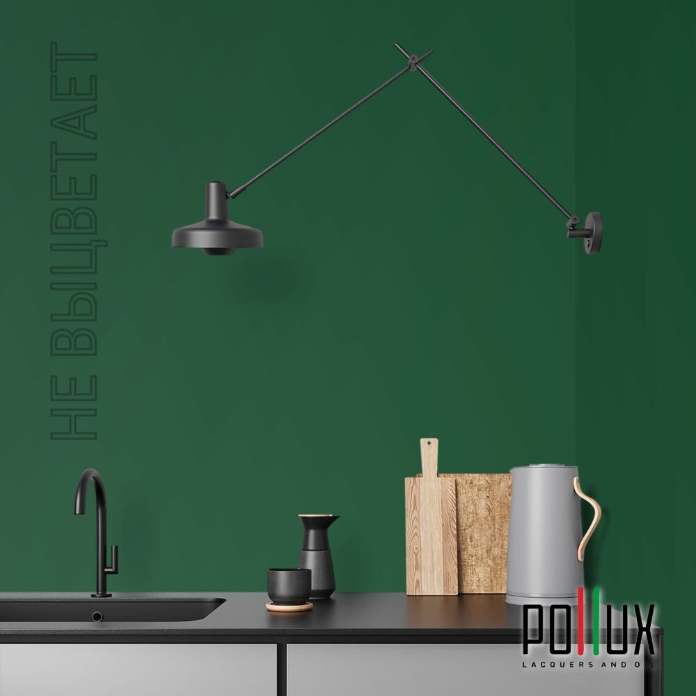Краска моющаяся интерьерная для стен и потолков, Pollux INTERIOR без запаха, быстросохнущая, акриловая, матовое покрытие, цвет NCS S 6530-G10Y, 1л.
