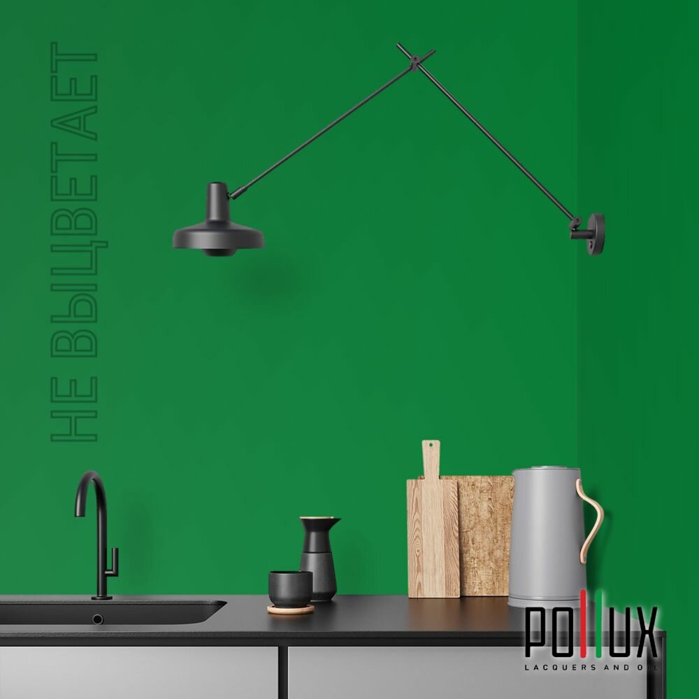 Краска моющаяся интерьерная для стен и потолков, Pollux INTERIOR без запаха, быстросохнущая, акриловая, матовое покрытие, цвет NCS S 3560-G10Y, 1л.