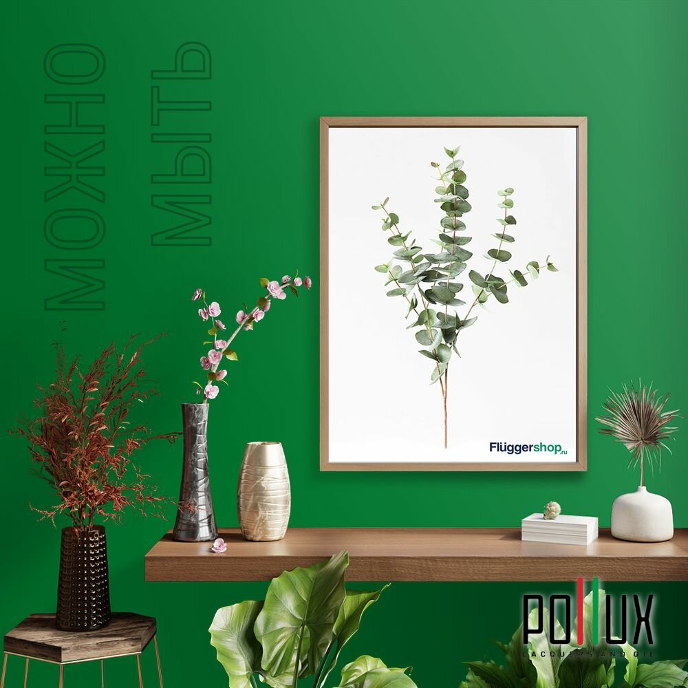 Краска моющаяся интерьерная для стен и потолков, Pollux INTERIOR без запаха, быстросохнущая, акриловая, матовое покрытие, цвет NCS S 5540-G10Y, 1л.