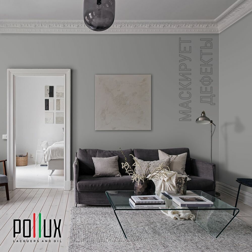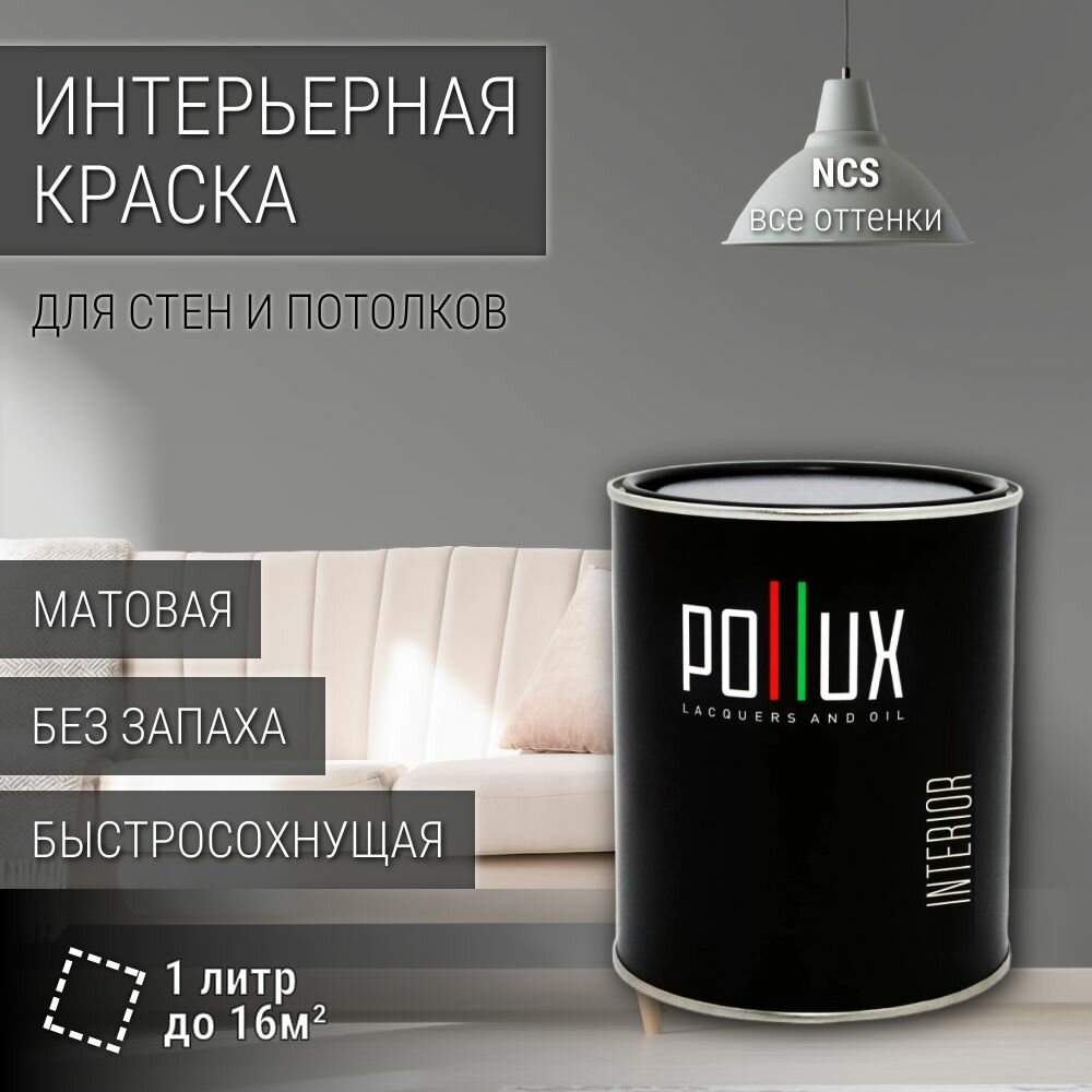 Краска моющаяся интерьерная для стен и потолков, Pollux INTERIOR без запаха, быстросохнущая, акриловая, матовое покрытие, цвет NCS S 8000-N, 1л.