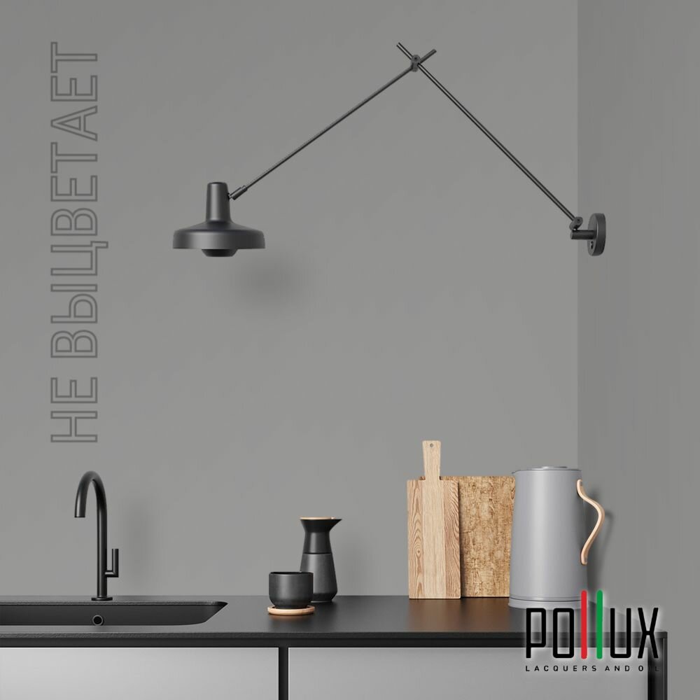 Краска моющаяся интерьерная для стен и потолков, Pollux INTERIOR без запаха, быстросохнущая, акриловая, матовое покрытие, цвет NCS S 8500-N, 1л.