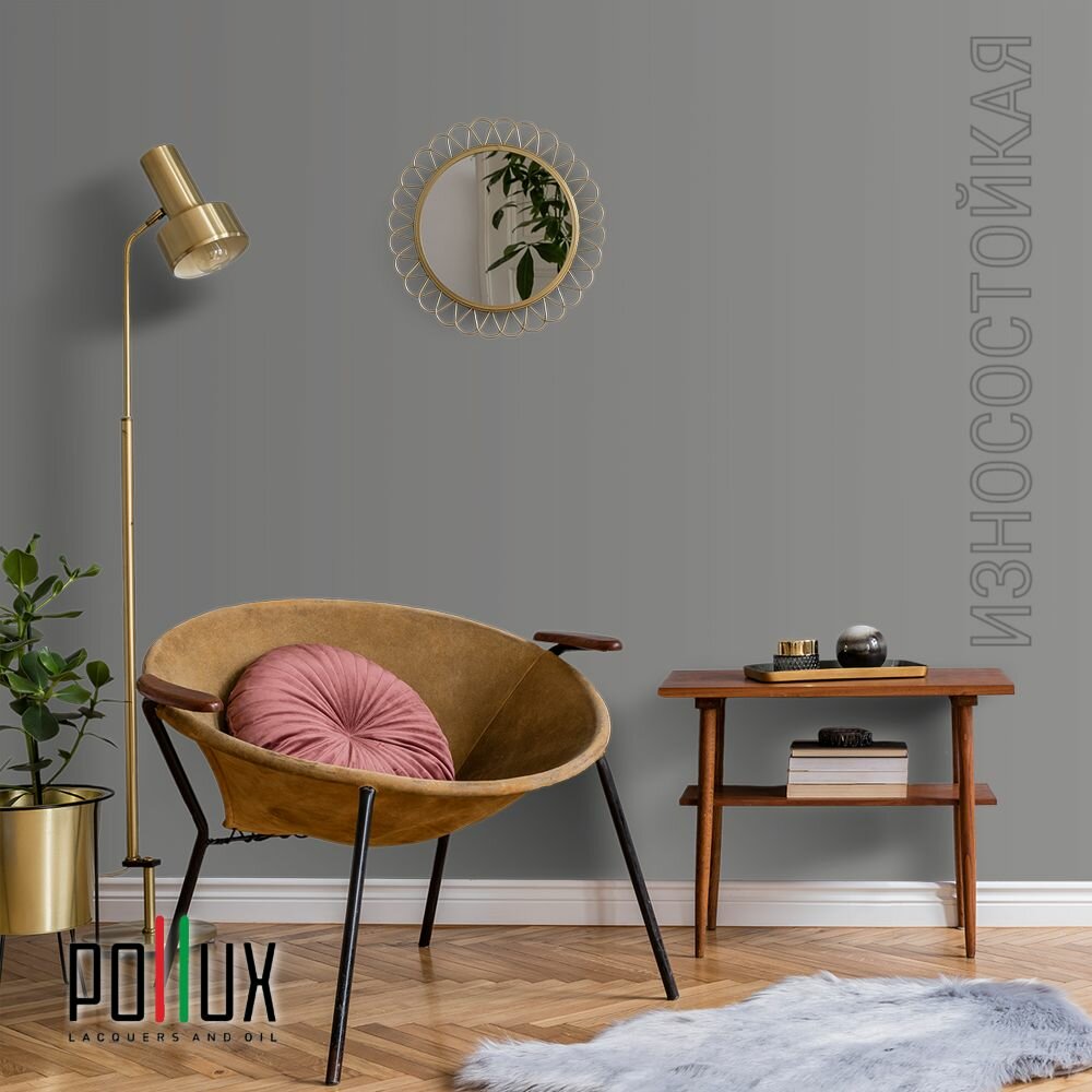 Краска моющаяся интерьерная для стен и потолков, Pollux INTERIOR без запаха, быстросохнущая, акриловая, матовое покрытие, цвет NCS S 7000-N, 1л.