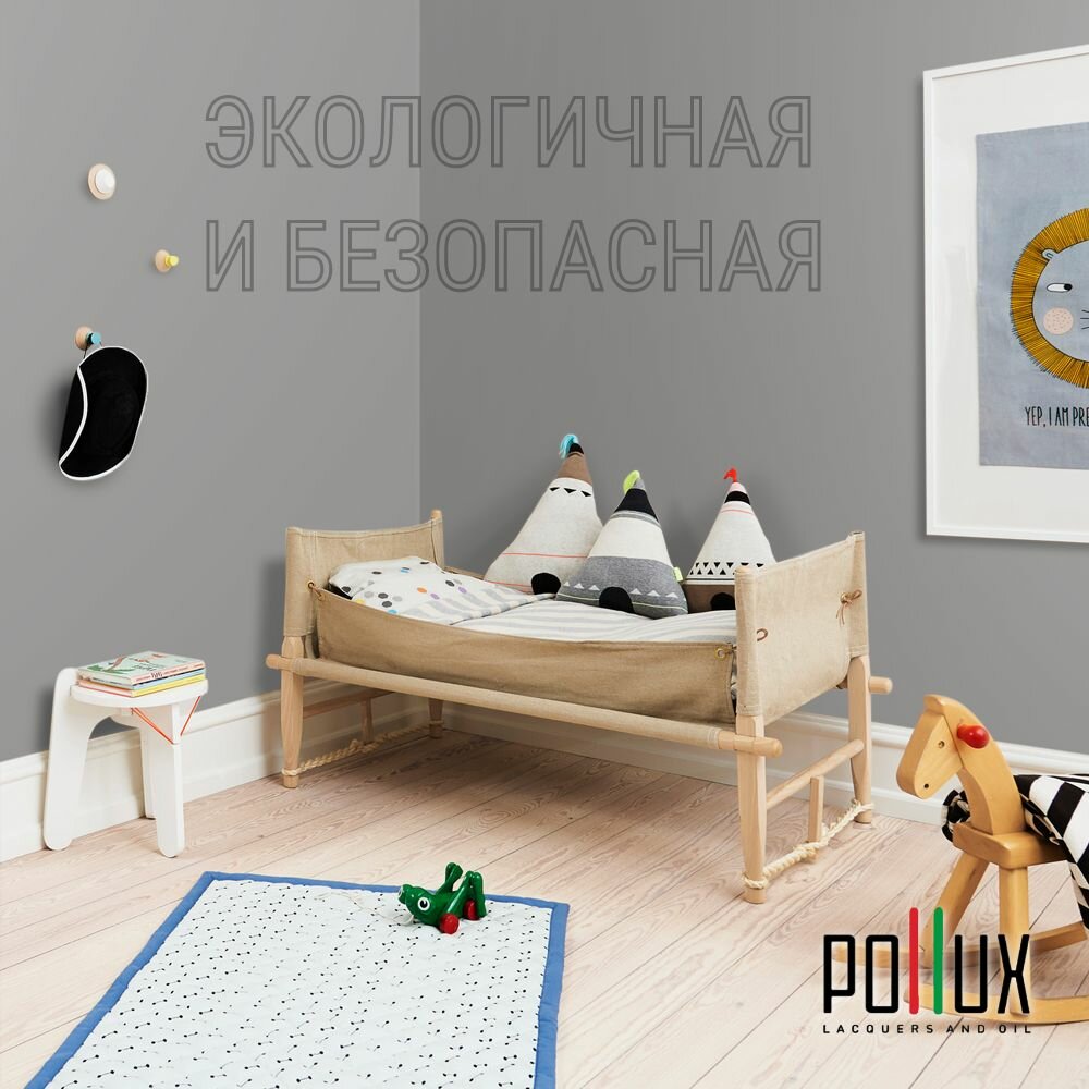 Краска моющаяся интерьерная для стен и потолков, Pollux INTERIOR без запаха, быстросохнущая, акриловая, матовое покрытие, цвет NCS S 1000-N, 1л.