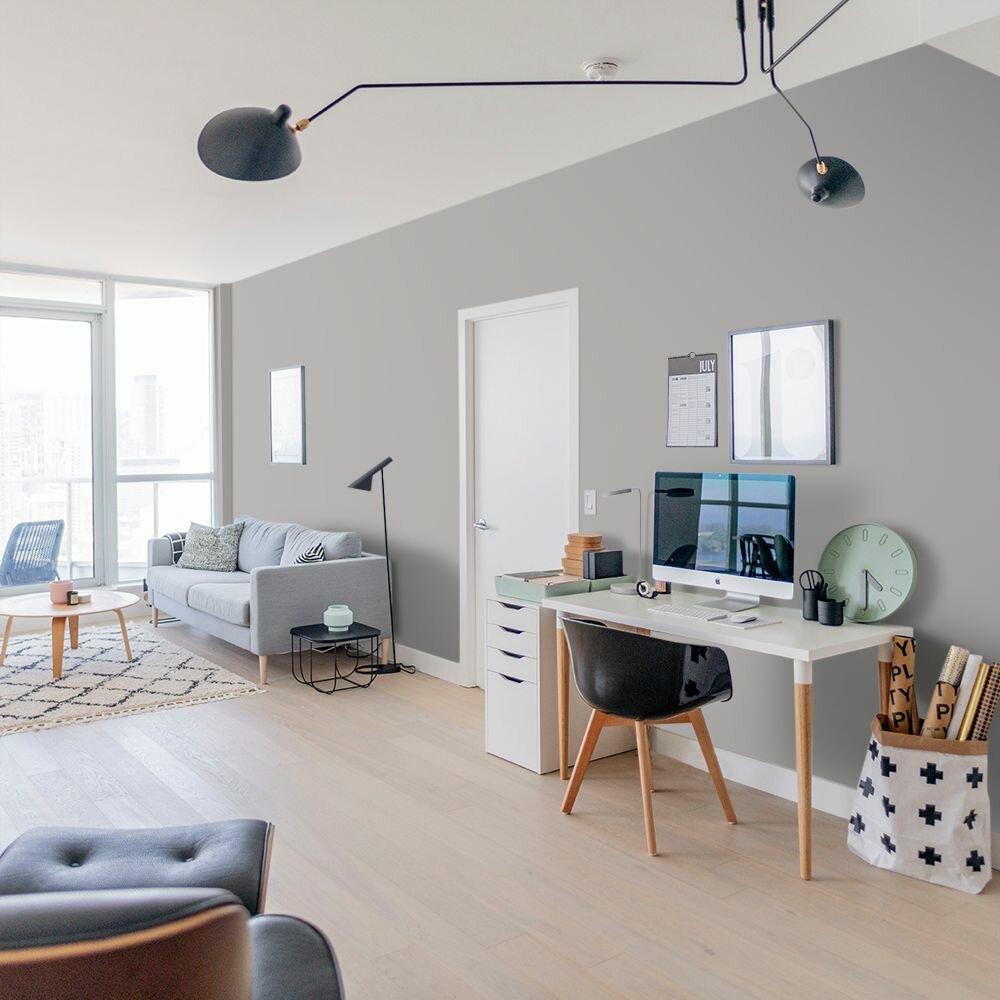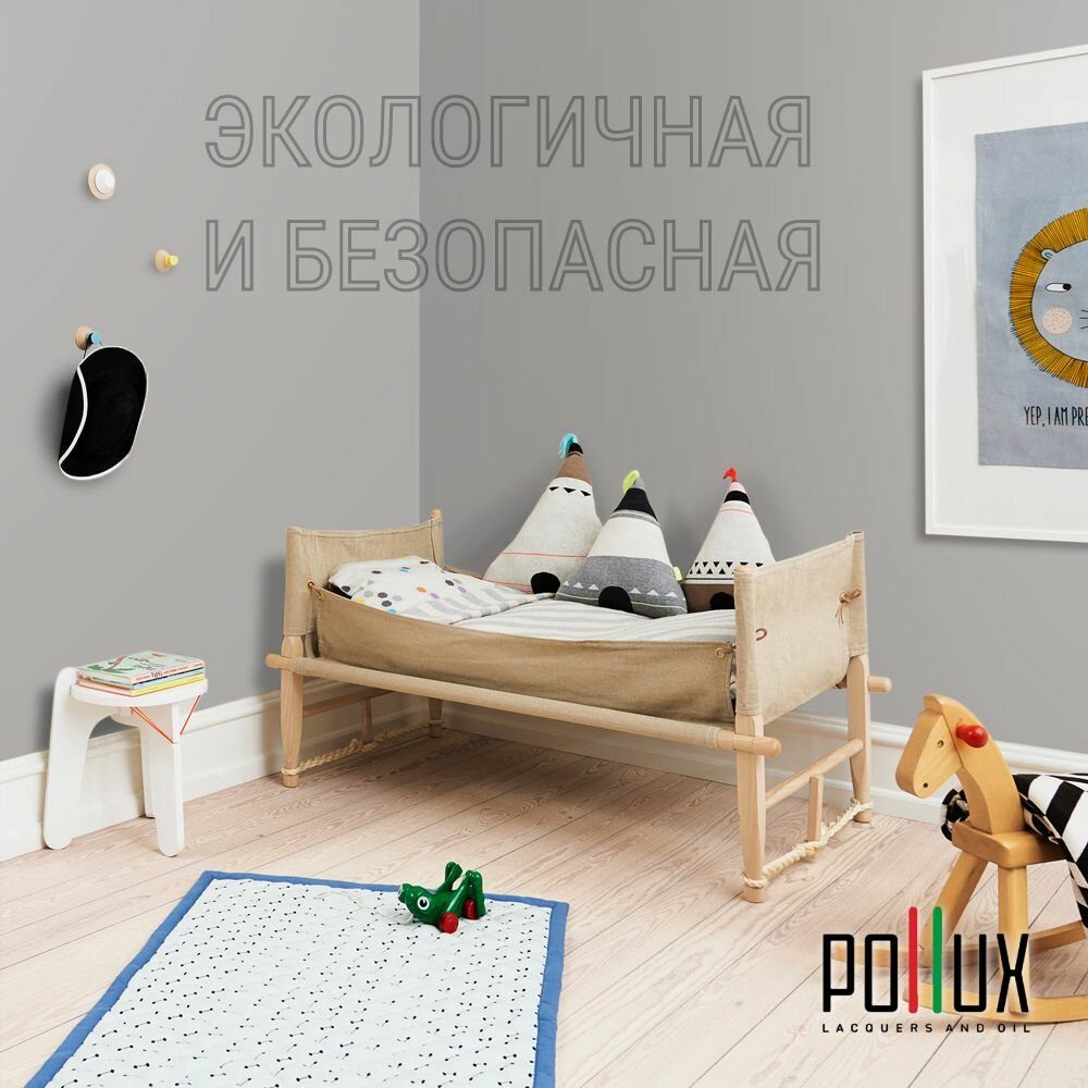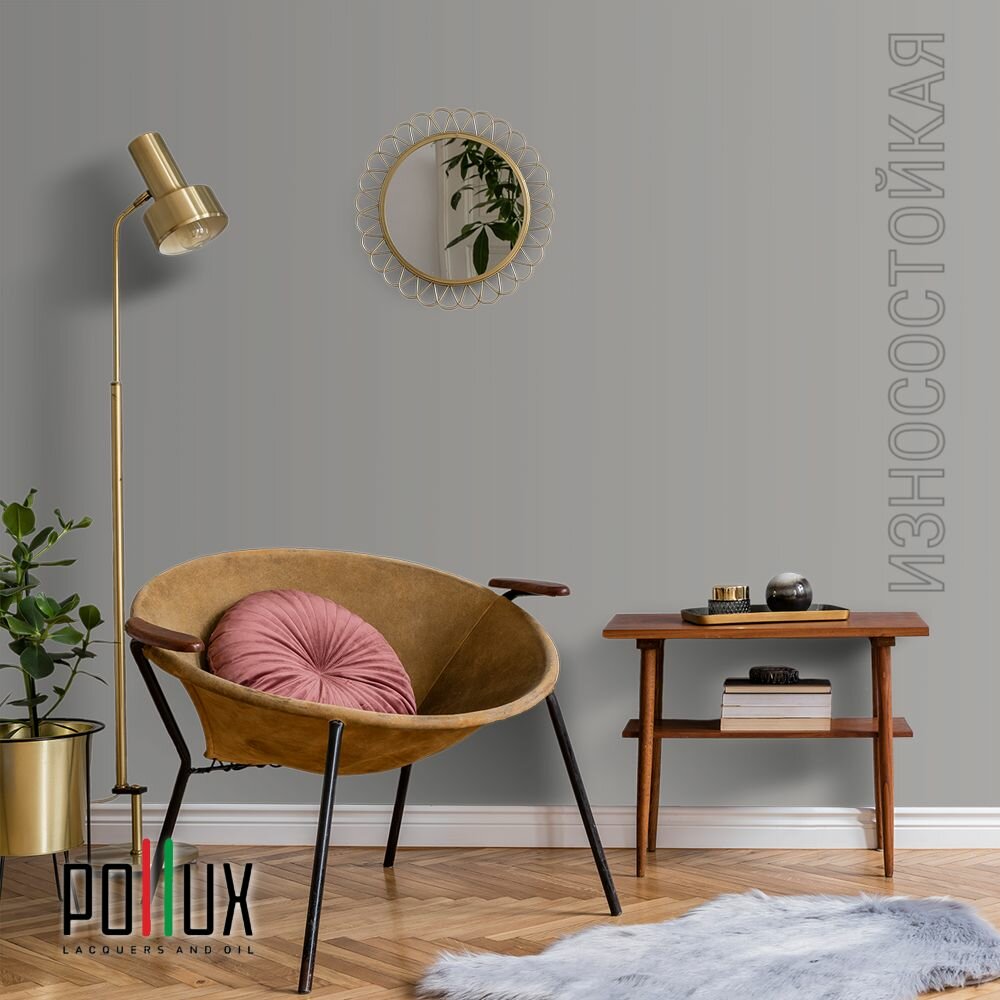 Краска моющаяся интерьерная для стен и потолков, Pollux INTERIOR без запаха, быстросохнущая, акриловая, матовое покрытие, цвет NCS S 7000-N, 1л.