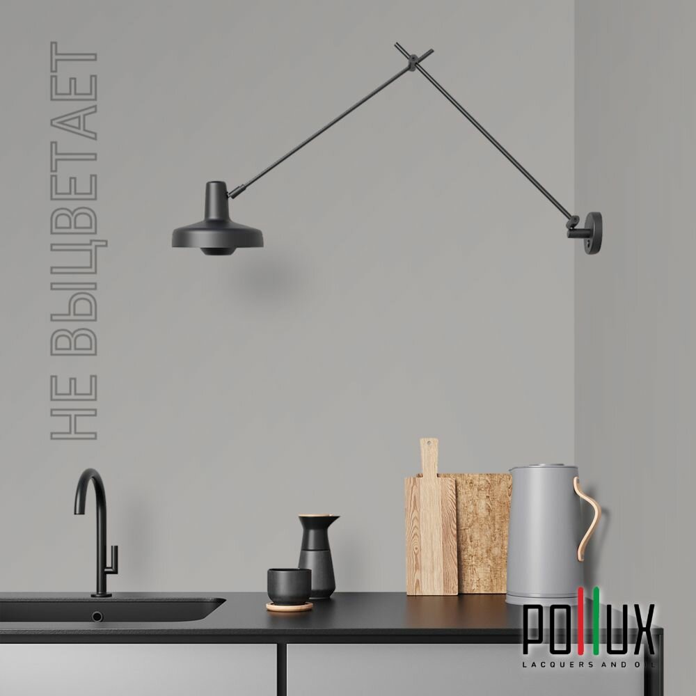 Краска моющаяся интерьерная для стен и потолков, Pollux INTERIOR без запаха, быстросохнущая, акриловая, матовое покрытие, цвет NCS S 8500-N, 1л.