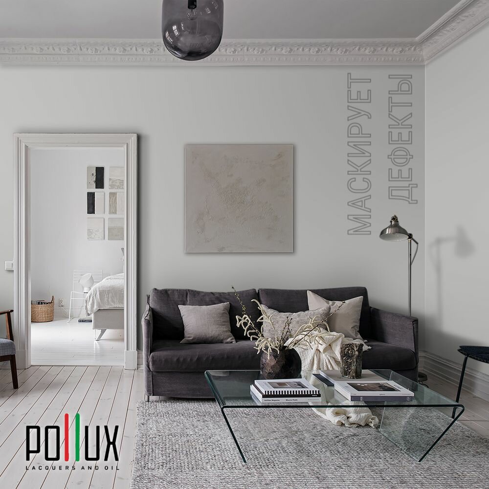Краска моющаяся интерьерная для стен и потолков, Pollux INTERIOR без запаха, быстросохнущая, акриловая, матовое покрытие, цвет NCS S 8000-N, 1л.