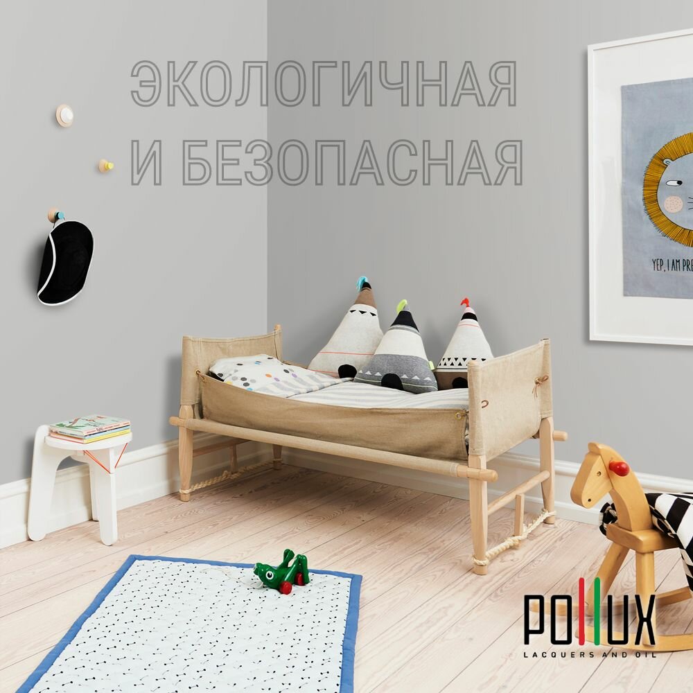 Краска моющаяся интерьерная для стен и потолков, Pollux INTERIOR без запаха, быстросохнущая, акриловая, матовое покрытие, цвет NCS S 1000-N, 1л.