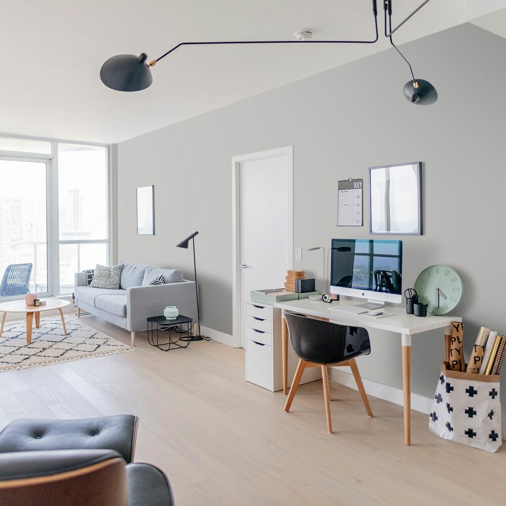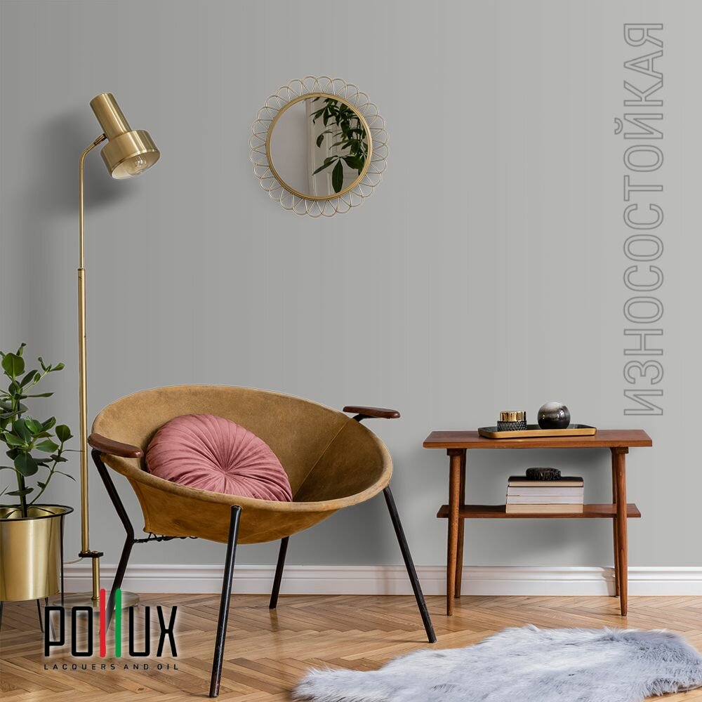 Краска моющаяся интерьерная для стен и потолков, Pollux INTERIOR без запаха, быстросохнущая, акриловая, матовое покрытие, цвет NCS S 7000-N, 1л.