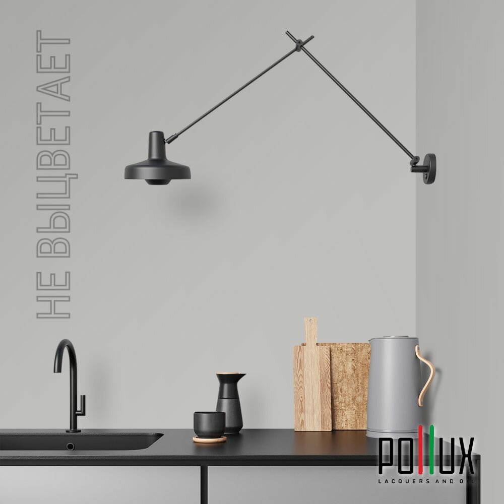 Краска моющаяся интерьерная для стен и потолков, Pollux INTERIOR без запаха, быстросохнущая, акриловая, матовое покрытие, цвет NCS S 4000-N, 1л.