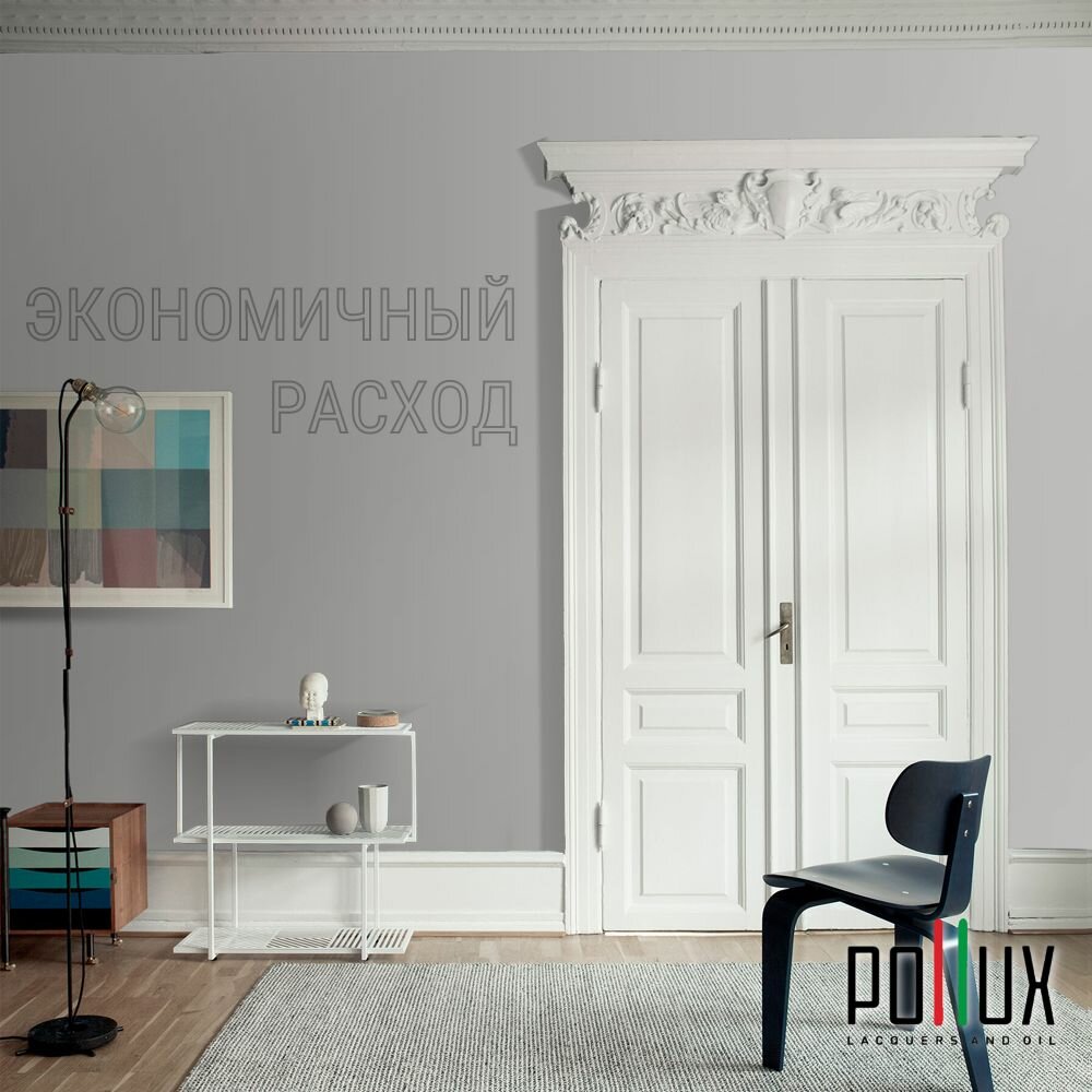 Краска моющаяся интерьерная для стен и потолков, Pollux INTERIOR без запаха, быстросохнущая, акриловая, матовое покрытие, цвет NCS S 0500-N, 1л.