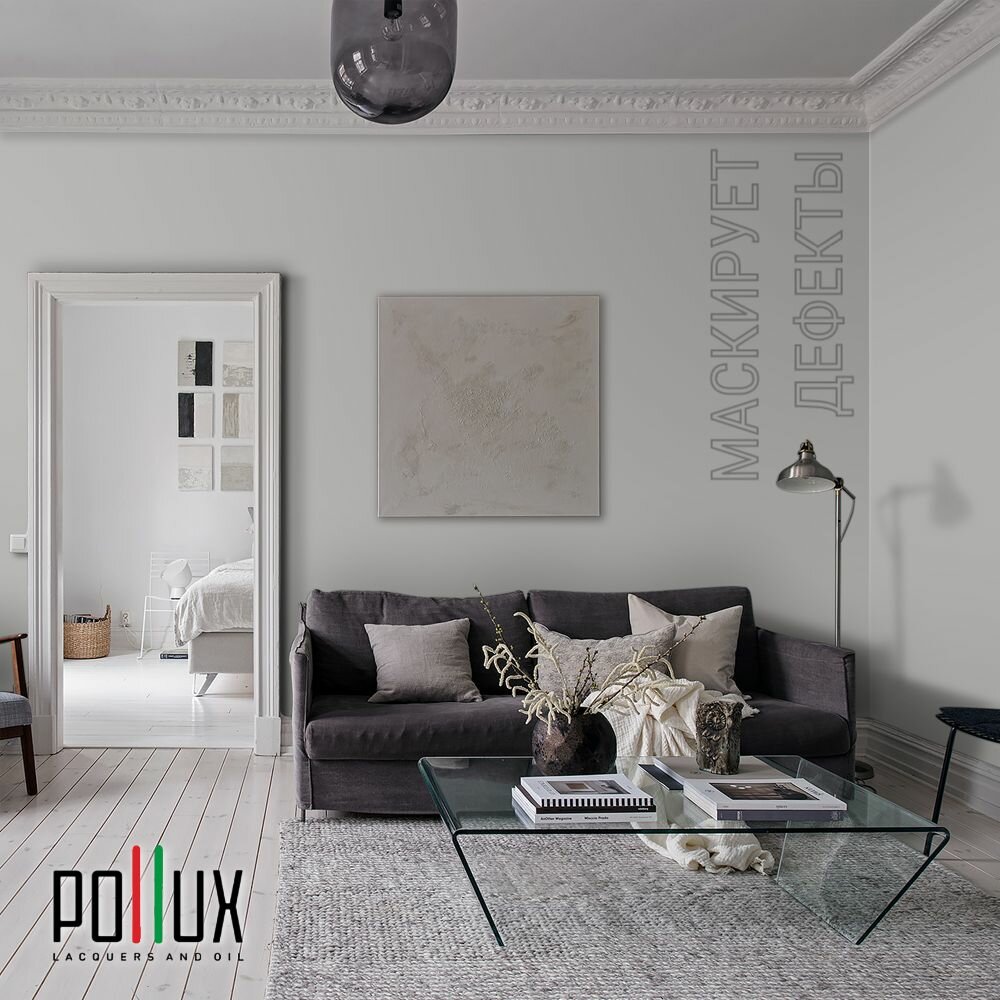 Краска моющаяся интерьерная для стен и потолков, Pollux INTERIOR без запаха, быстросохнущая, акриловая, матовое покрытие, цвет NCS S 8000-N, 1л.