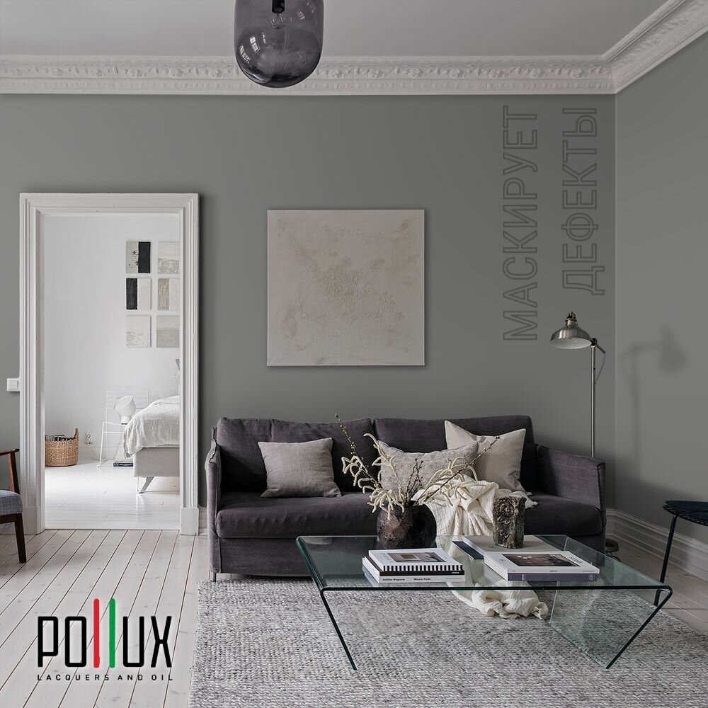 Краска моющаяся интерьерная для стен и потолков, Pollux INTERIOR без запаха, быстросохнущая, акриловая, матовое покрытие, цвет NCS S 7000-N, 1л.