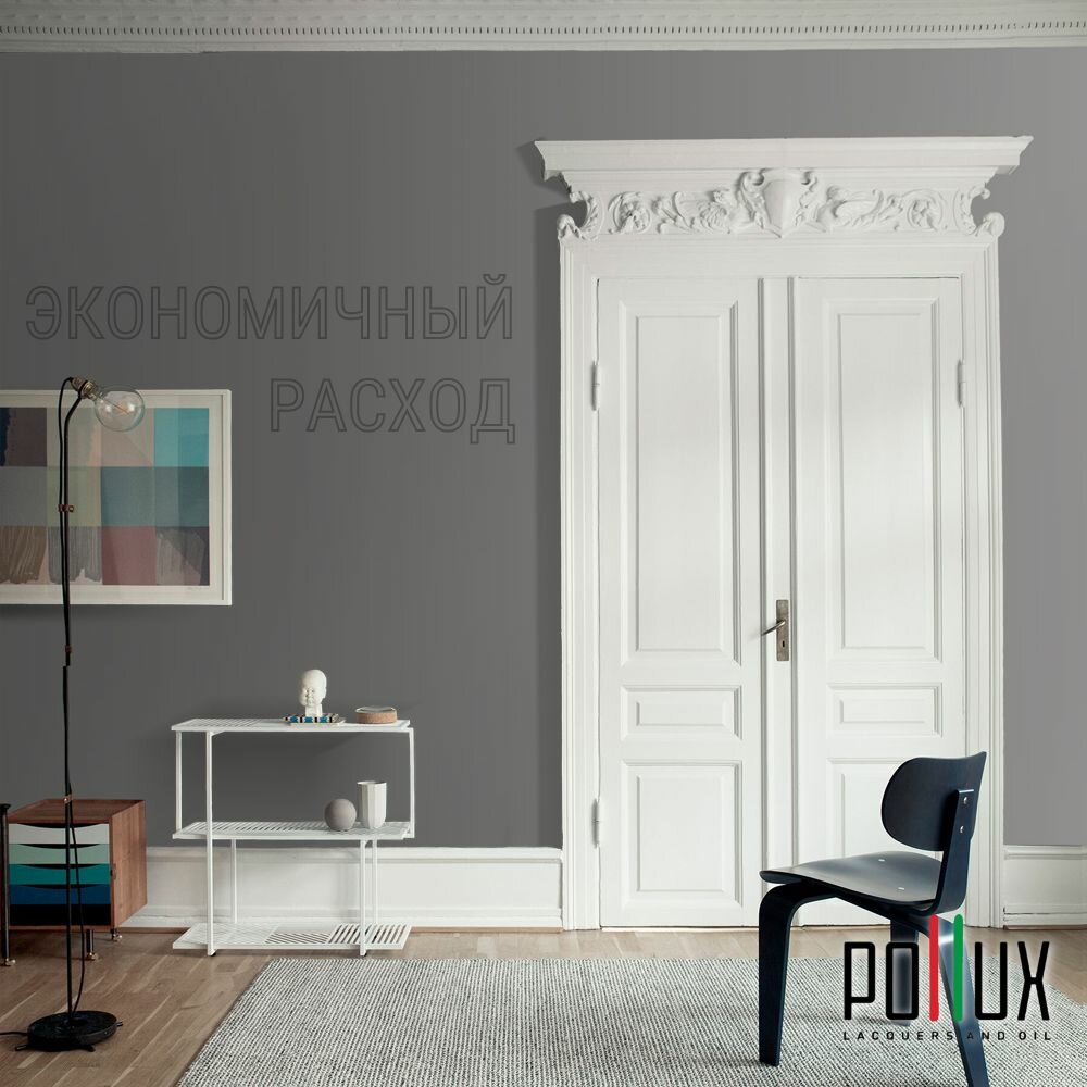 Краска моющаяся интерьерная для стен и потолков, Pollux INTERIOR без запаха, быстросохнущая, акриловая, матовое покрытие, цвет NCS S 8500-N, 1л.