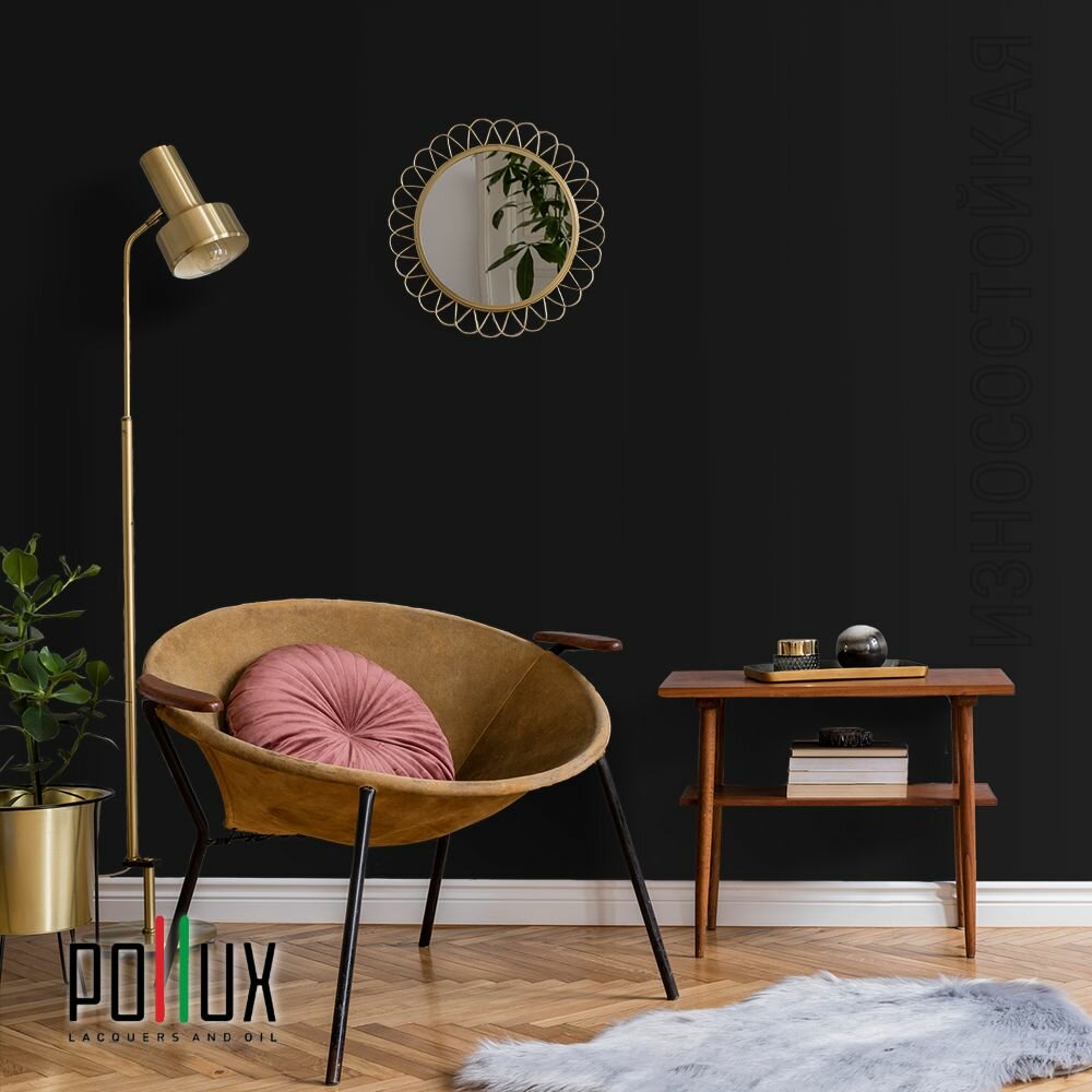 Краска моющаяся интерьерная для стен и потолков, Pollux INTERIOR без запаха, быстросохнущая, акриловая, матовое покрытие, цвет NCS S 9000-N, 1л.