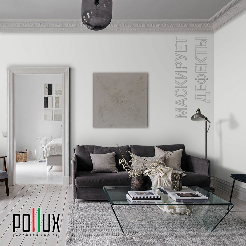 Краска моющаяся интерьерная для стен и потолков, Pollux INTERIOR без запаха, быстросохнущая, акриловая, матовое покрытие, цвет NCS S 9000-N, 1л.