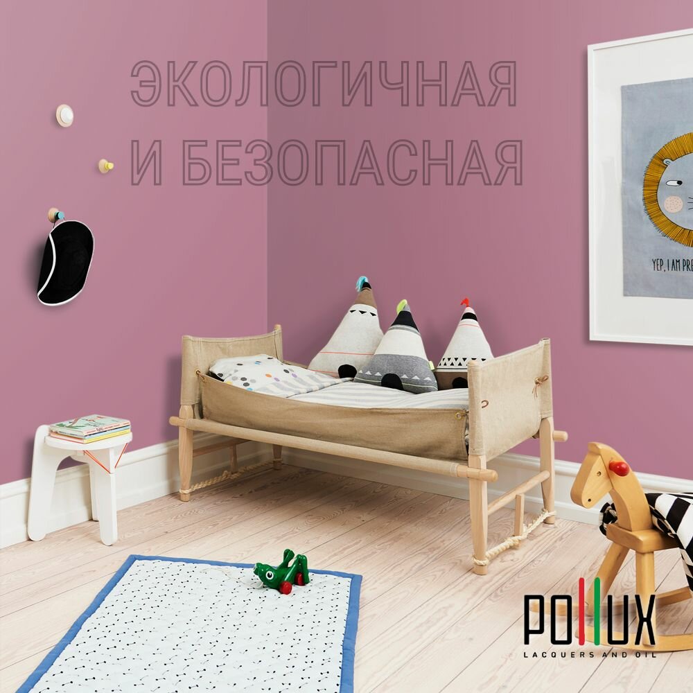 Краска моющаяся интерьерная для стен и потолков, Pollux INTERIOR без запаха, быстросохнущая, акриловая, матовое покрытие, цвет NCS S 0603-R20B, 1л.