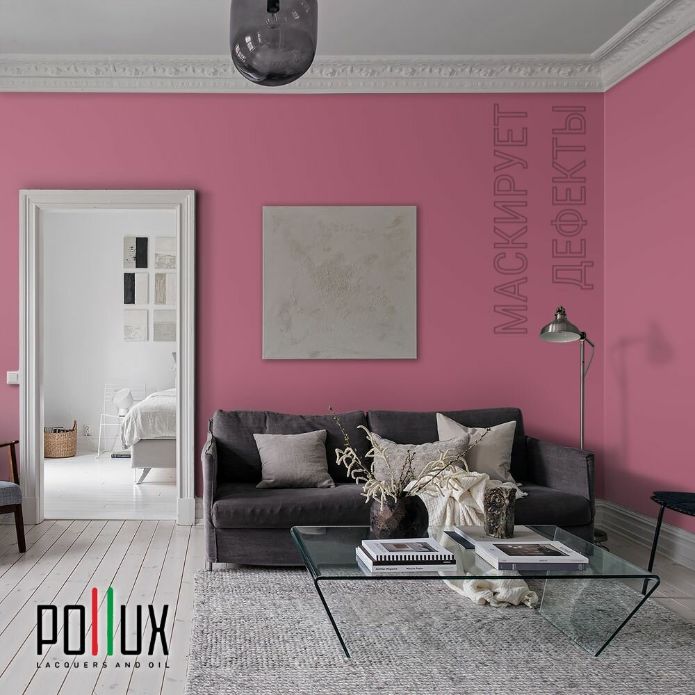 Краска моющаяся интерьерная для стен и потолков, Pollux INTERIOR без запаха, быстросохнущая, акриловая, матовое покрытие, цвет NCS S 1070-R20B, 1л.