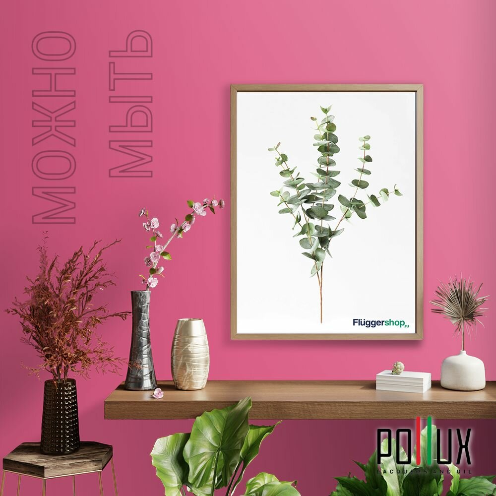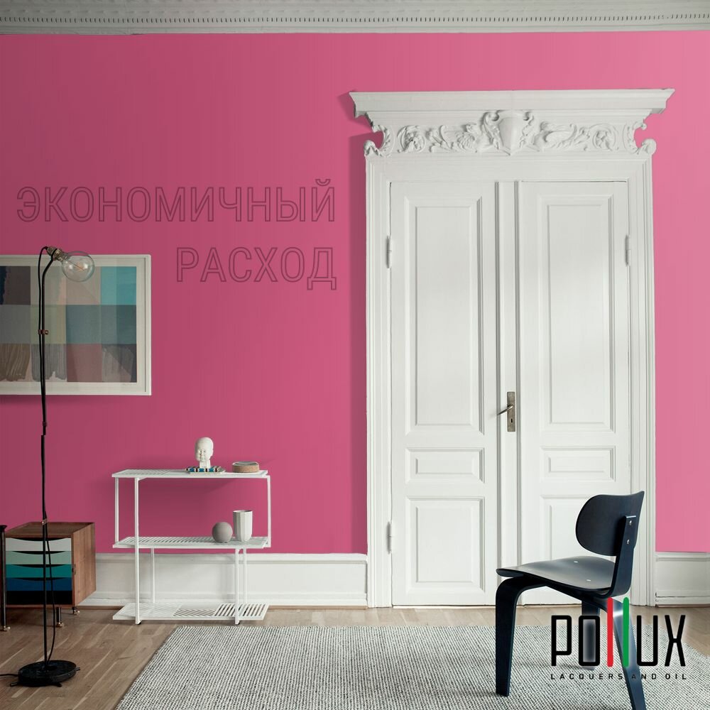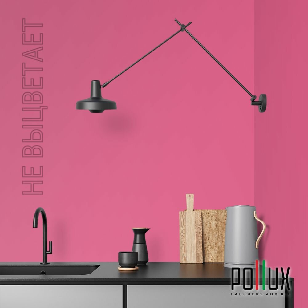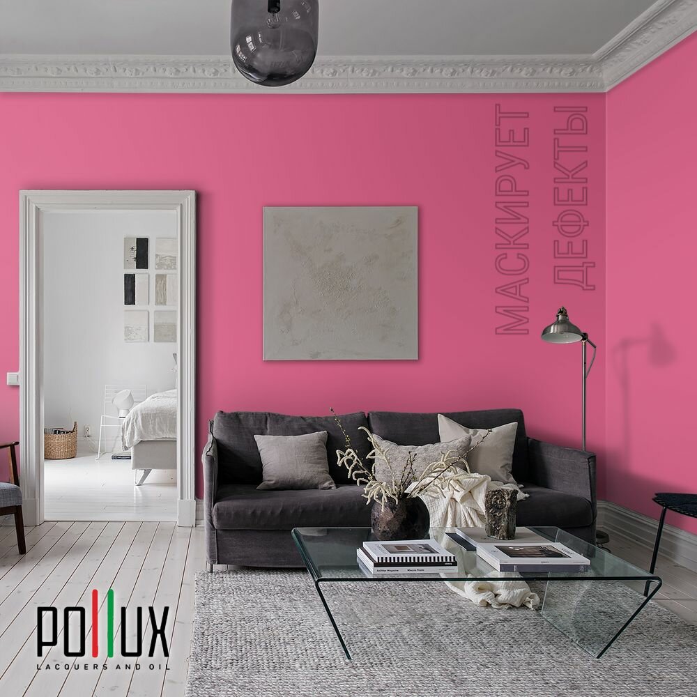 Краска моющаяся интерьерная для стен и потолков, Pollux INTERIOR без запаха, быстросохнущая, акриловая, матовое покрытие, цвет NCS S 2030-R20B, 1л.
