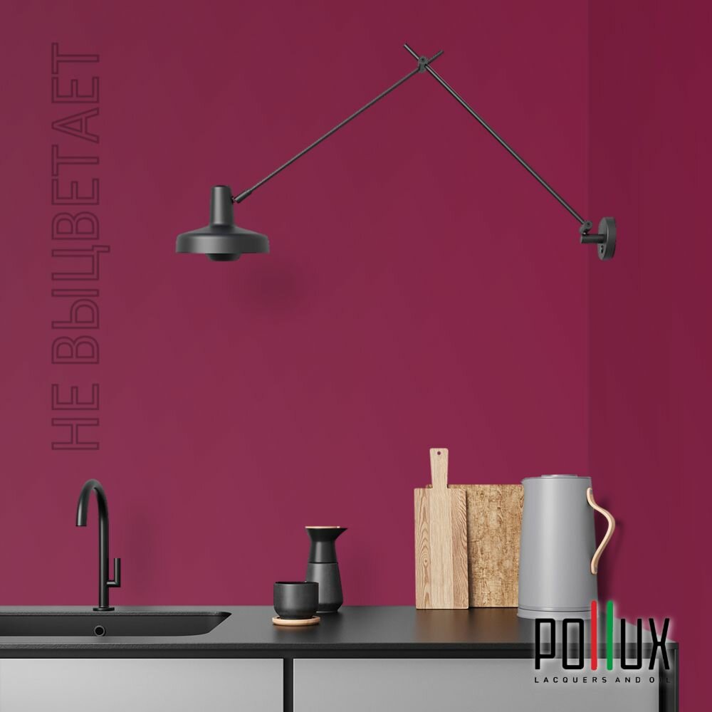 Краска моющаяся интерьерная для стен и потолков, Pollux INTERIOR без запаха, быстросохнущая, акриловая, матовое покрытие, цвет NCS S 3005-R20B, 1л.
