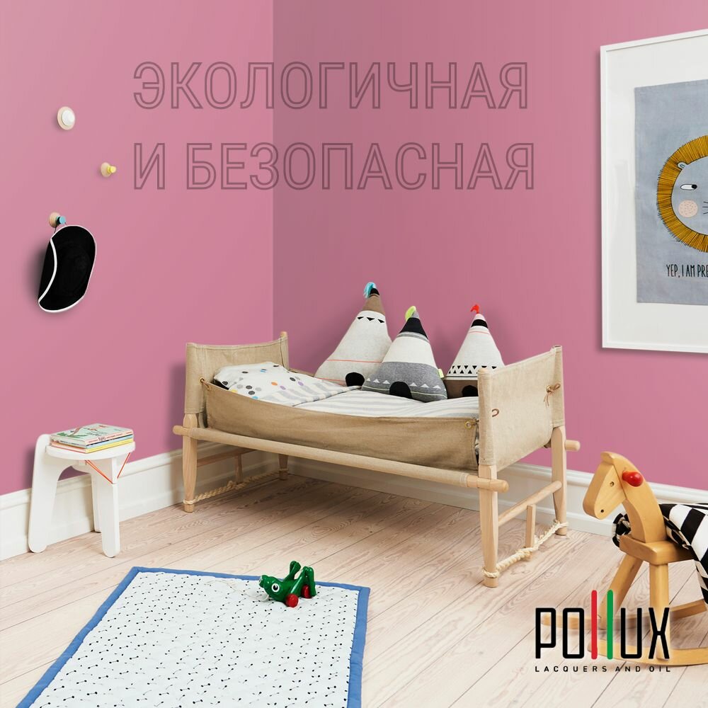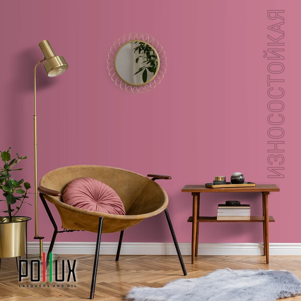 Краска моющаяся интерьерная для стен и потолков, Pollux INTERIOR без запаха, быстросохнущая, акриловая, матовое покрытие, цвет NCS S 0507-R20B, 1л.