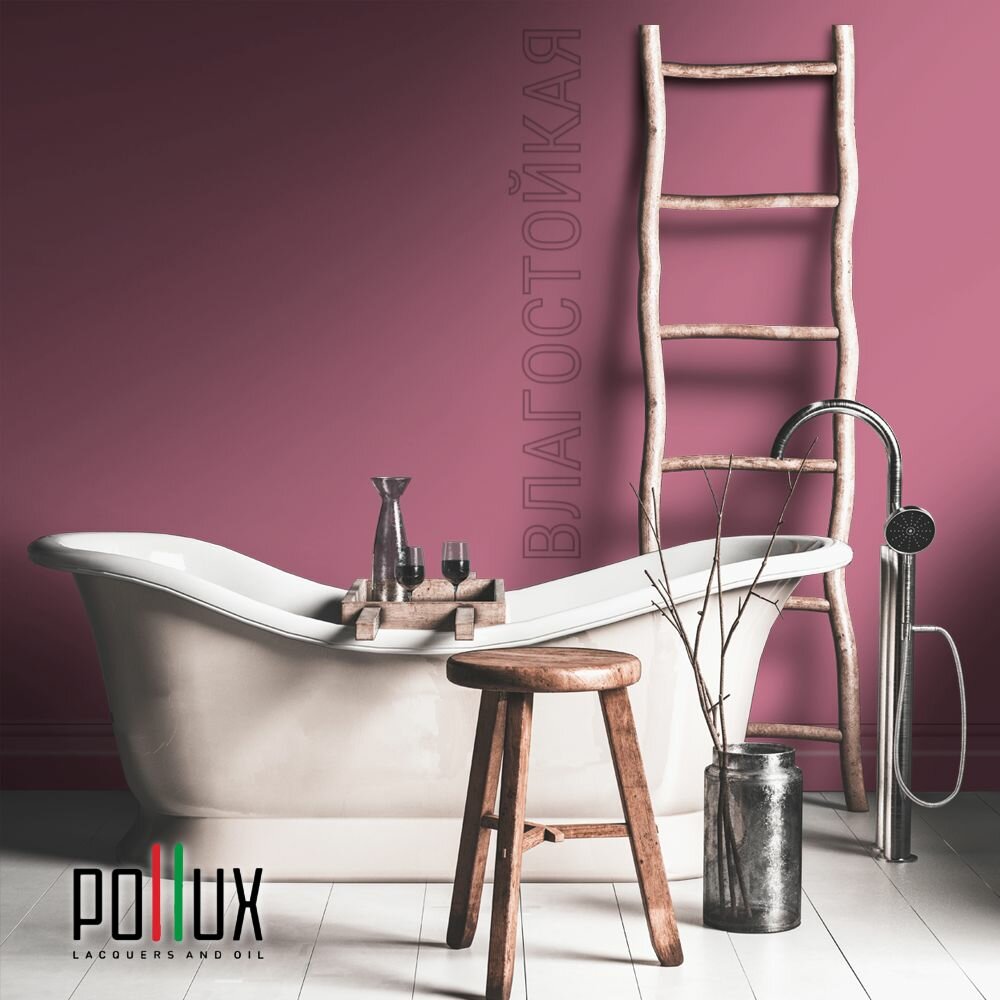 Краска моющаяся интерьерная для стен и потолков, Pollux INTERIOR без запаха, быстросохнущая, акриловая, матовое покрытие, цвет NCS S 3005-R20B, 1л.