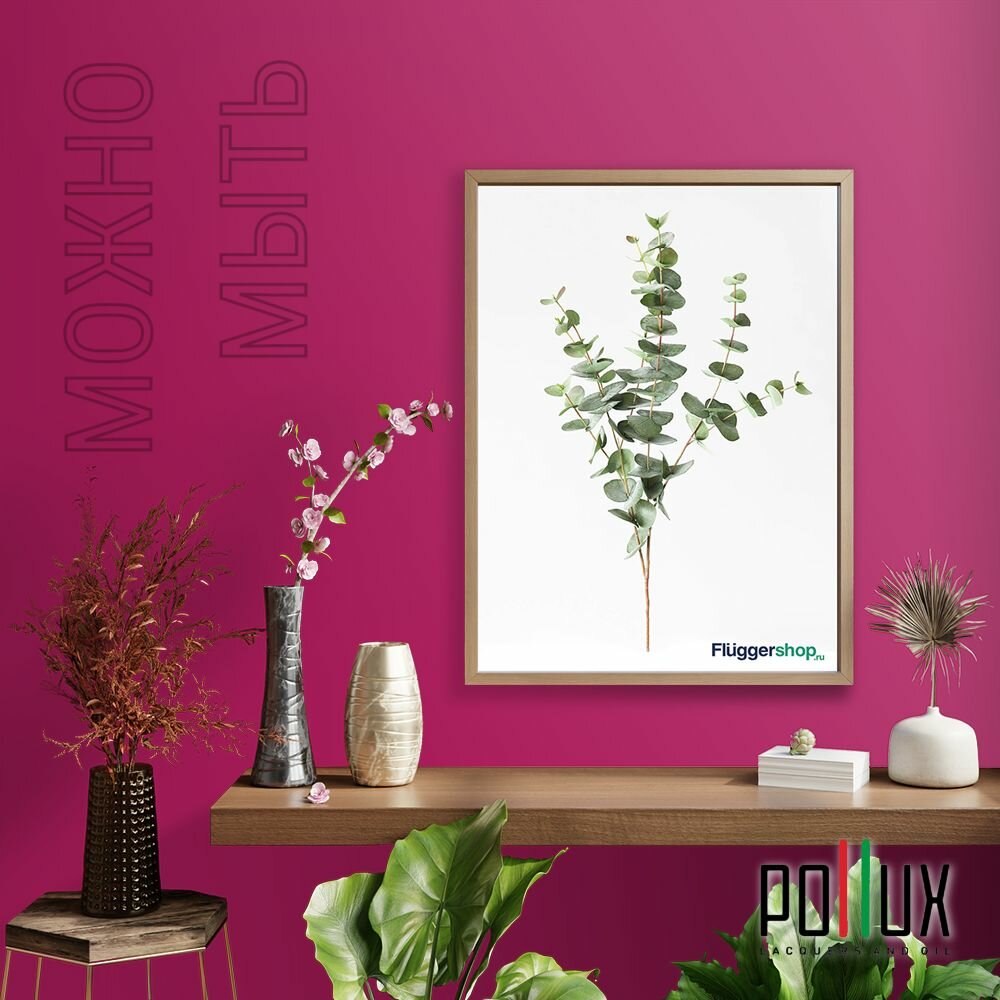 Краска моющаяся интерьерная для стен и потолков, Pollux INTERIOR без запаха, быстросохнущая, акриловая, матовое покрытие, цвет NCS S 2005-R20B, 5л.