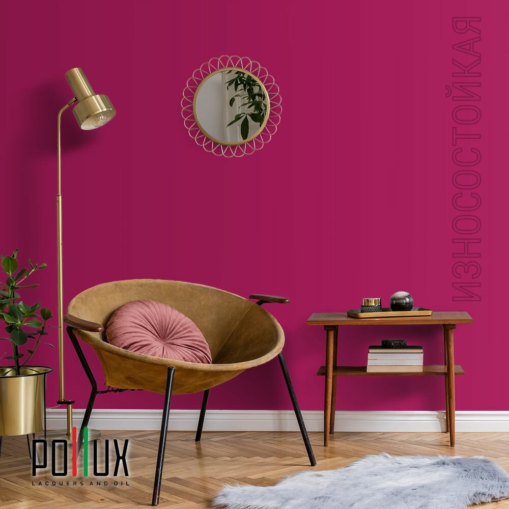 Краска моющаяся интерьерная для стен и потолков, Pollux INTERIOR без запаха, быстросохнущая, акриловая, матовое покрытие, цвет NCS S 3030-R20B, 1л.