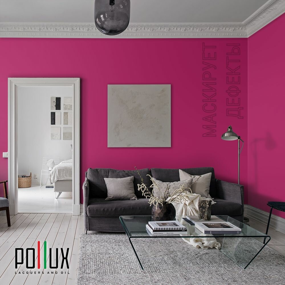 Краска моющаяся интерьерная для стен и потолков, Pollux INTERIOR без запаха, быстросохнущая, акриловая, матовое покрытие, цвет NCS S 1070-R20B, 1л.