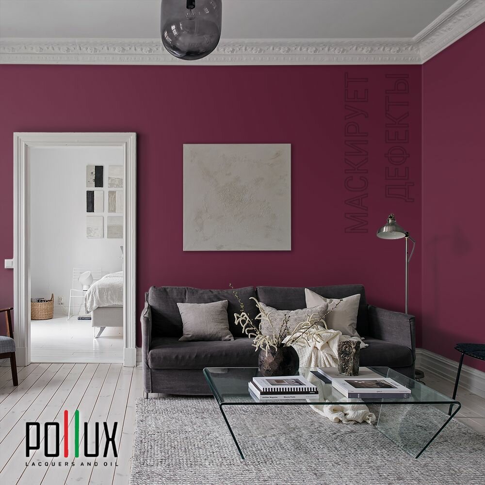 Краска моющаяся интерьерная для стен и потолков, Pollux INTERIOR без запаха, быстросохнущая, акриловая, матовое покрытие, цвет NCS S 3005-R20B, 1л.
