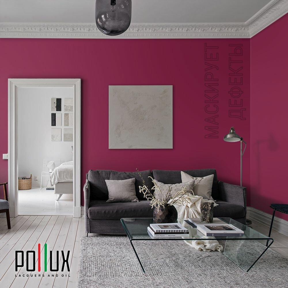 Краска моющаяся интерьерная для стен и потолков, Pollux INTERIOR без запаха, быстросохнущая, акриловая, матовое покрытие, цвет NCS S 2030-R20B, 1л.